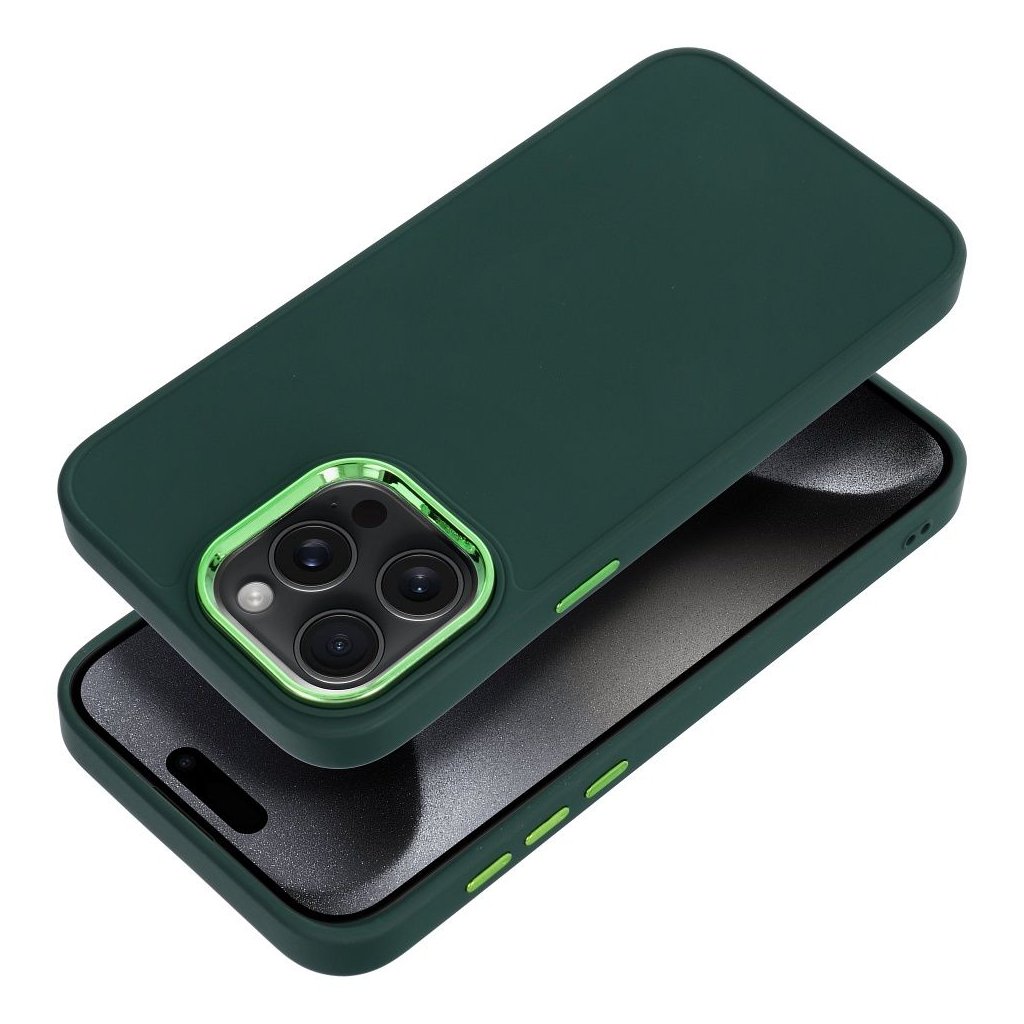 Tento štýlový kryt FRAME Case pre IPHONE 15 Pro Max zelený bude váš elegantný a praktický doplnok pre váš outfit. Má zosilnené okraje, mäkký materiál TPU a vyvýšený rám okolo ostrovčeka fotoaparátu. Je vyrobený z PC a potiahnutý pozinkovanou lesklou vrstvou v odtieni, ktorý dokonale dopĺňa farbu celého puzdra. Rovnaký farebný povrch je použitý aj na bočných tlačidlách.