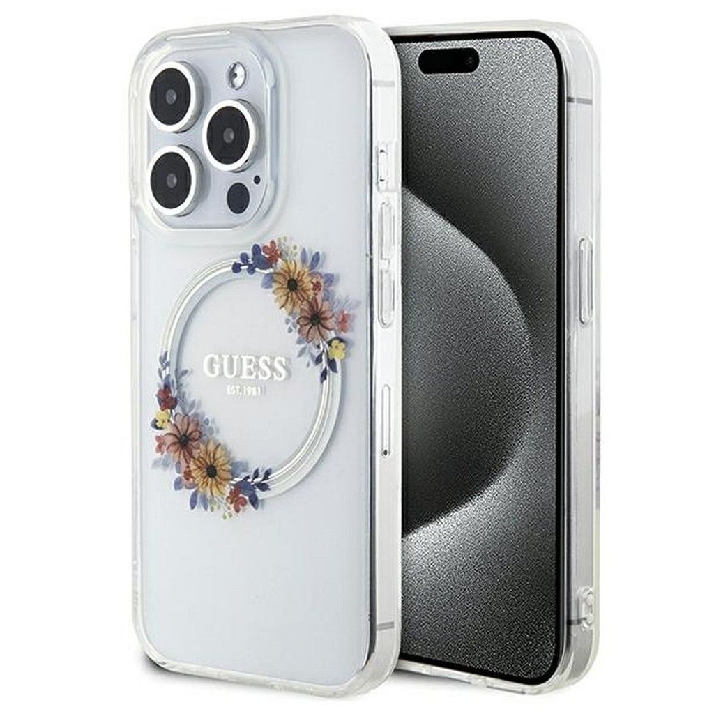 GUESS pre IPHONE 15 Pro s MagSafe GUHMP15LHFWFCT (Flowers Wreath) transparent
