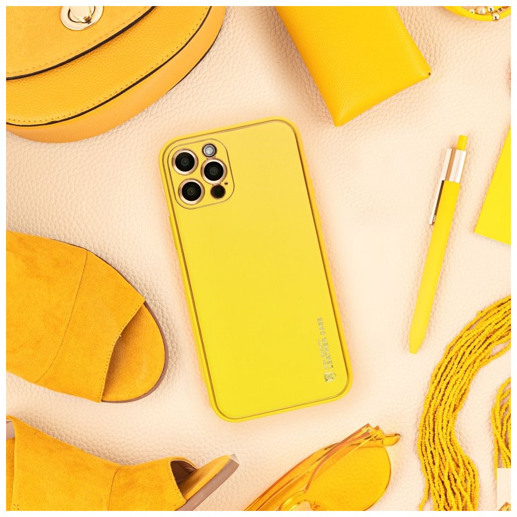 Kryt LEATHER case pre IPHONE 15 Pro žltý