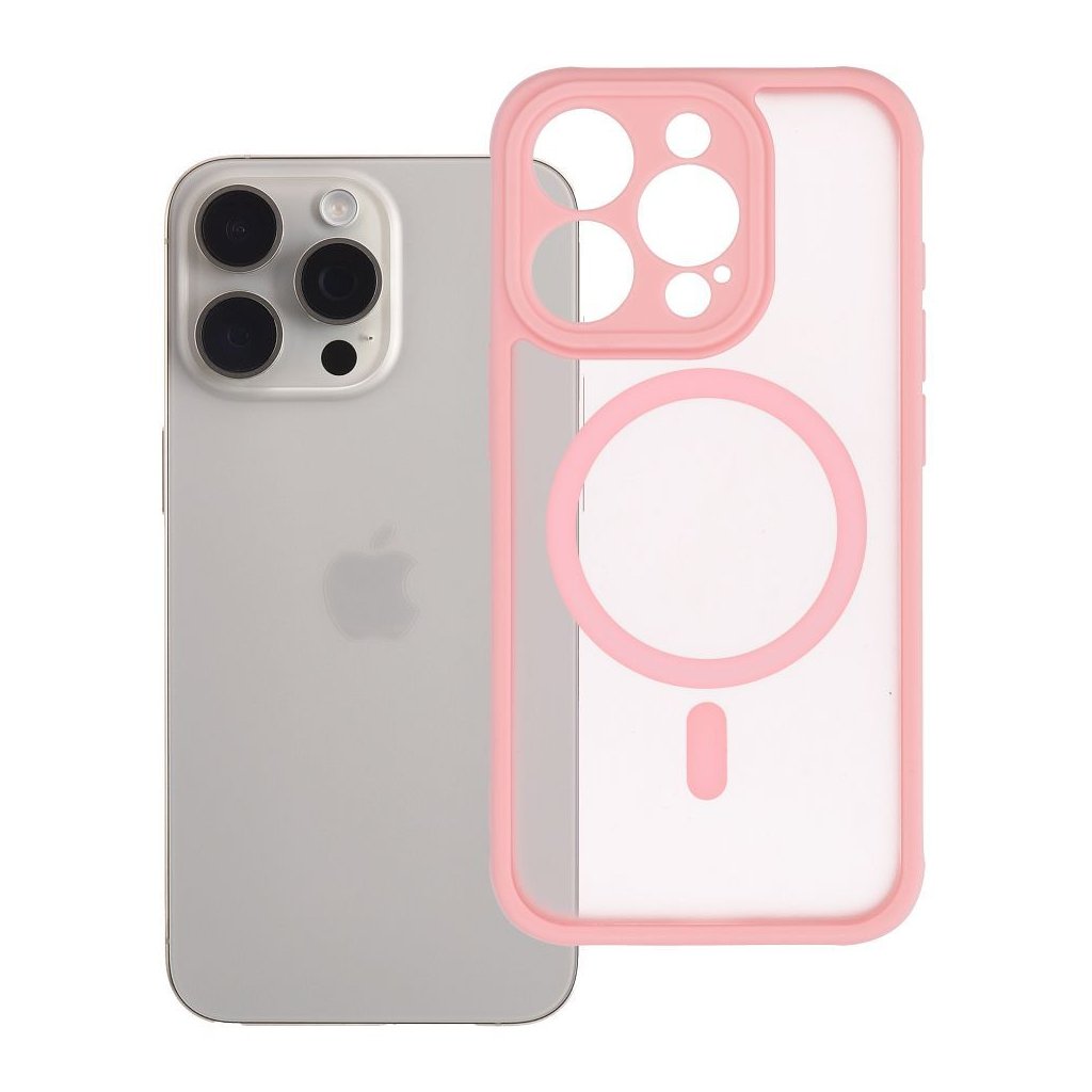 Kvaltiný MagSafe kryt Case for iPhone 15 PRO Full Matte Mag Cover compatible with MagSafe svetlo ružový zabezpečí vášmu telefónu skvelú ochranu a jeho odolná, matná priehľadná vrstva chráni pred nárazmi alebo poškriabaním. Výrobok je kompatibilný s technológiou MagSafe, ktorá okrem iného umožňuje indukčné nabíjanie.