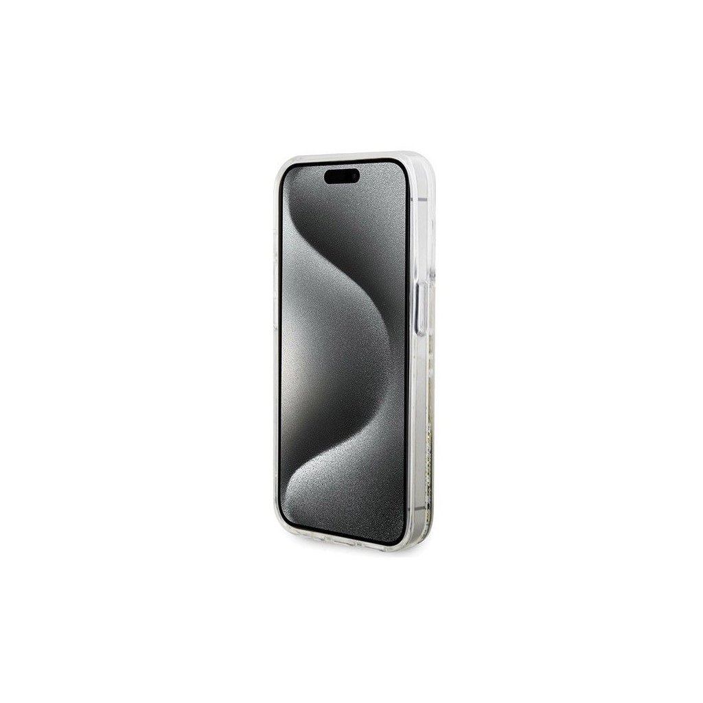 GUESS pre IPHONE 15 Pro GUHCP15LLFCSEGT (Liquid Glitter zlaté Stripes) transparent