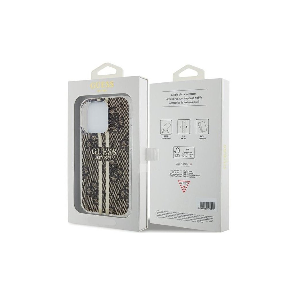Štýlové a GUESS pre IPHONE 15 Pro GUHCP15MH4PSEGW (4G zlaté Stripe) hnedé je kvalitný obal na Váš telefón vyrobený z odolných materiálov, s prepracovanými detailmi a dizajnom.