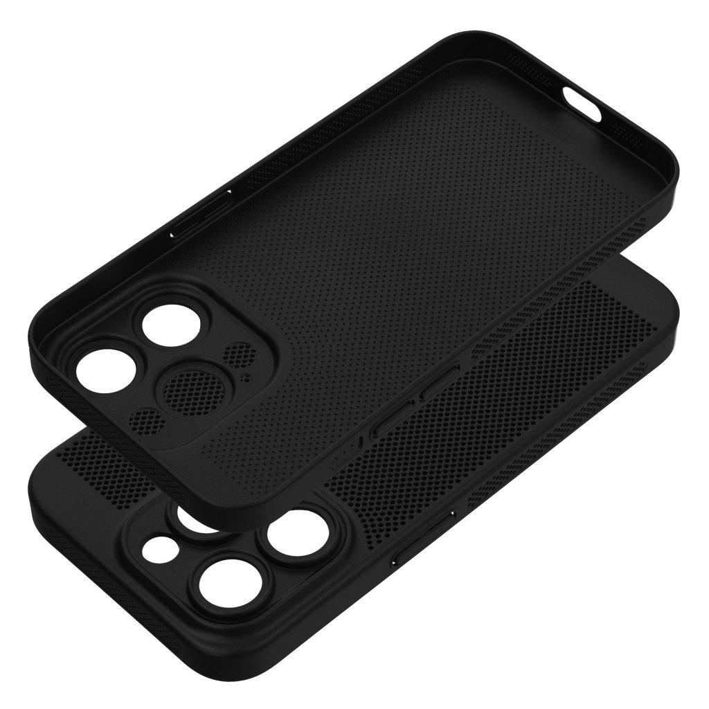 Kryt s vetraním Case pre iPhone 15 Pro Breezy čierny je riešenie ktoré spája ochranu, funkčnosť a štýlový dizajn. Bolo navrhnuté tak, aby zabezpečilo optimálnu cirkuláciu vzduchu, čím sa znižuje riziko zahrievania telefónu. Vďaka perforovanému vzoru a kvalitnému plastu puzdro chráni telefón a zachováva jeho štíhlosť. Je vyrobené z jedného odliatku, čo zaručuje dokonalé prispôsobenie a ochranu ostrovčeka fotoaparátu.