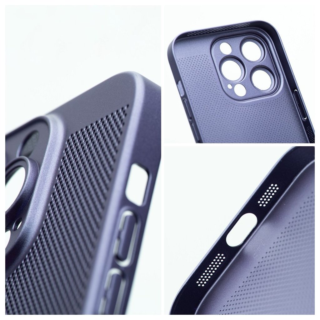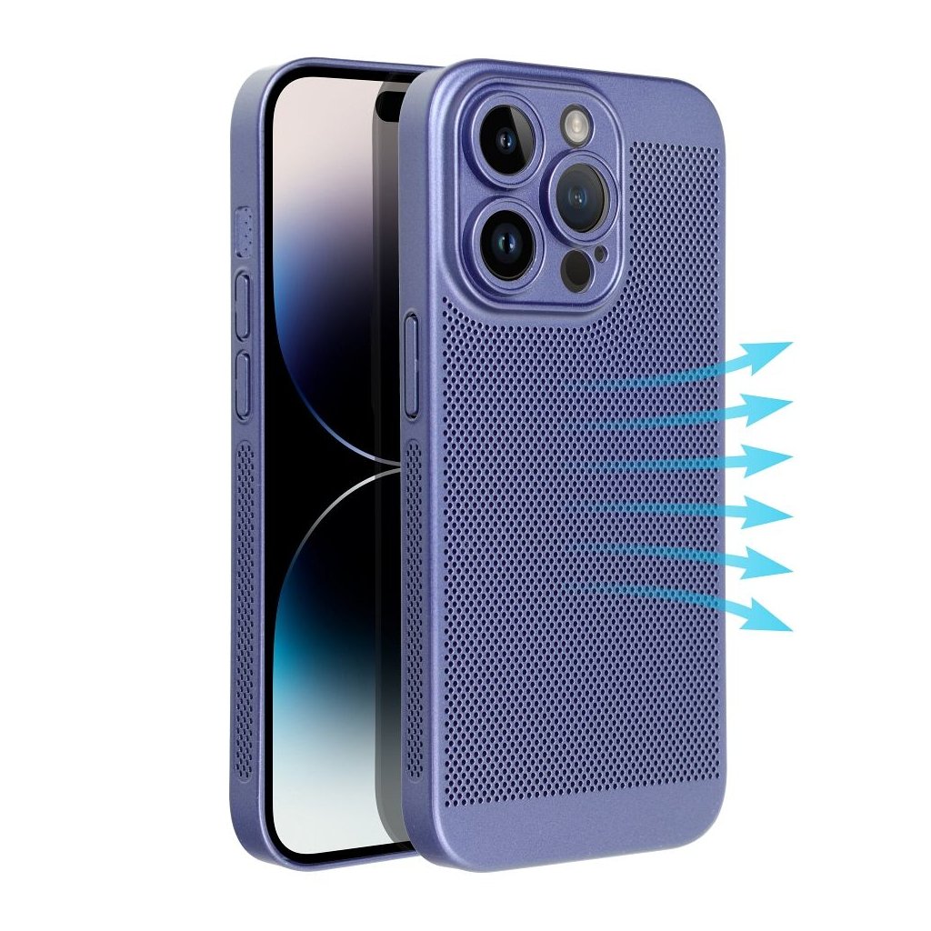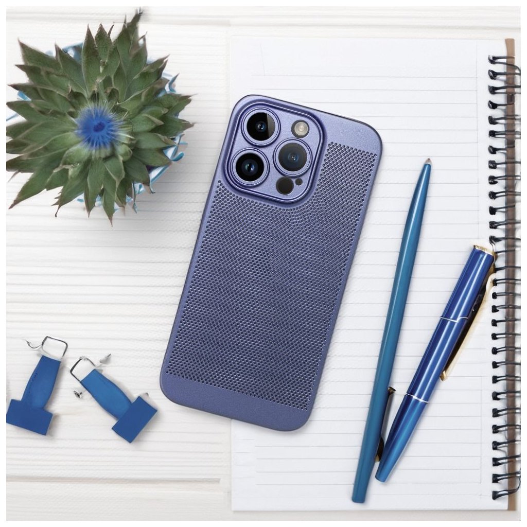 Kryt s vetraním BREEZY case pre IPHONE 15 Pro modrý je riešenie ktoré spája ochranu, funkčnosť a štýlový dizajn. Bolo navrhnuté tak, aby zabezpečilo optimálnu cirkuláciu vzduchu, čím sa znižuje riziko zahrievania telefónu. Vďaka perforovanému vzoru a kvalitnému plastu puzdro chráni telefón a zachováva jeho štíhlosť. Je vyrobené z jedného odliatku, čo zaručuje dokonalé prispôsobenie a ochranu ostrovčeka fotoaparátu.
