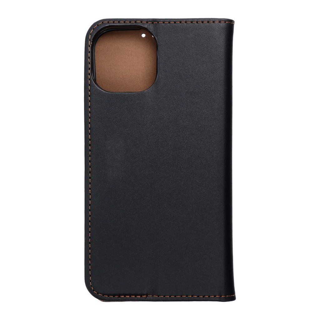 Elegantné kožené puzdro SMART PRO Book pre IPHONE 15 čierne z vysoko kvalitných materiálov (prírodnej kože a TPU) a veľmi starostlivým spracovaním je určené pre náročných užívateľov, ktorí majú radi svoj štýl. Konštrukcia je vystužená, ale k dodatočnej ochrane i estetickej funkcii prispievajú aj švy po okrajoch, vyvedené vo farbe vnútornej časti puzdra.