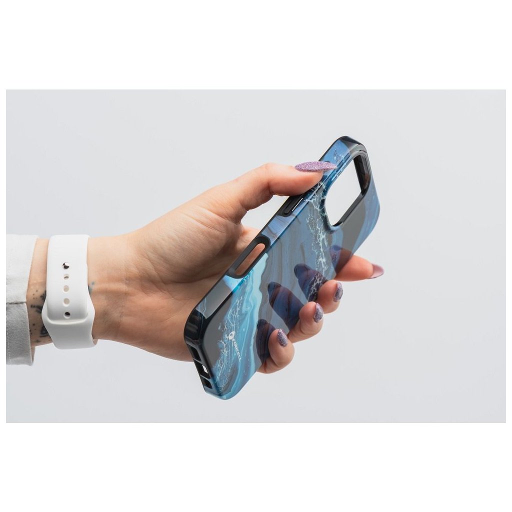 Kvalitný pestrofarebný kryt Case for iPhone 15 F-Protect Mirage compatible with Magsafe Military Drop-Test hlboké more sa vyznačuje atraktívnym dizajnom a robustným spracovaním. Jeho výrazná potlač bola vytvorená pomocou technológie 4D a je pokrytá dodatočnou priehľadnou vrstvou, ktorá mu dodáva odolnosť a chráni ho pred odieraním. Puzdro je vyrobené z pružného silikónu a zvýšené okraje na hranách a okolo rámu fotoaparátu chránia smartfón.