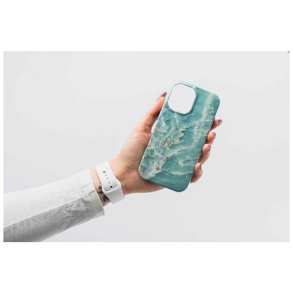 Kvalitný pestrofarebný kryt Case for iPhone 15 F-Protect Mirage compatible with Magsafe Military Drop-Test zelený mramor sa vyznačuje atraktívnym dizajnom a robustným spracovaním. Jeho výrazná potlač bola vytvorená pomocou technológie 4D a je pokrytá dodatočnou priehľadnou vrstvou, ktorá mu dodáva odolnosť a chráni ho pred odieraním. Puzdro je vyrobené z pružného silikónu a zvýšené okraje na hranách a okolo rámu fotoaparátu chránia smartfón.
