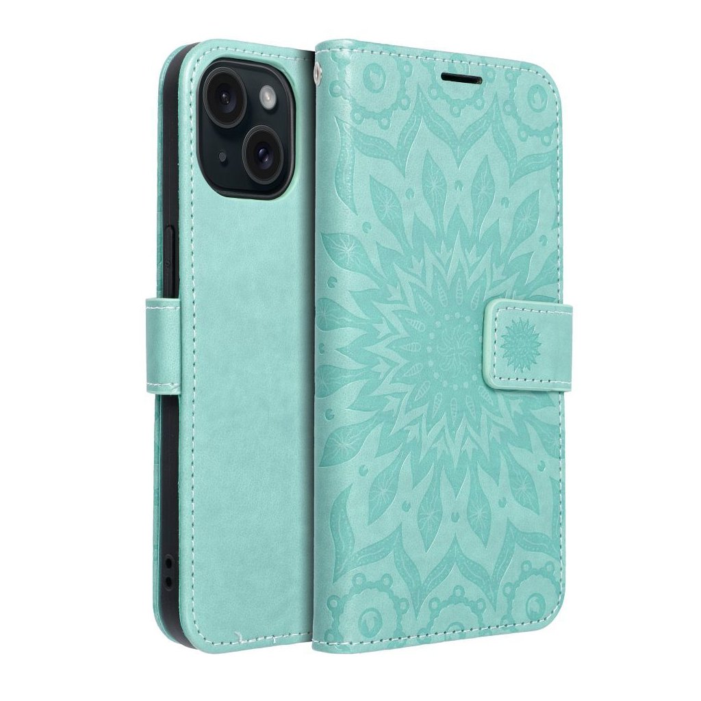 Peňaženkové / zatváracie Puzdro MEZZO Book pre IPHONE 15 mandala - zelené zaujme predovšetkým spracovaním vzoru mandaly, stromu, prípadne lapača snov. Oproti iným puzdrom podobného typu nie sú totiž vzory u puzdier Forcell Mezzo Book natlačené, ale vtlačené priamo do materiálu (ekologická koža). Vďaka tomu sa vzor jednak nezotrie, ale môžete ho naozaj na dotyk cítiť.