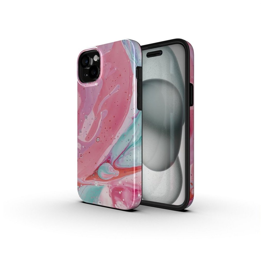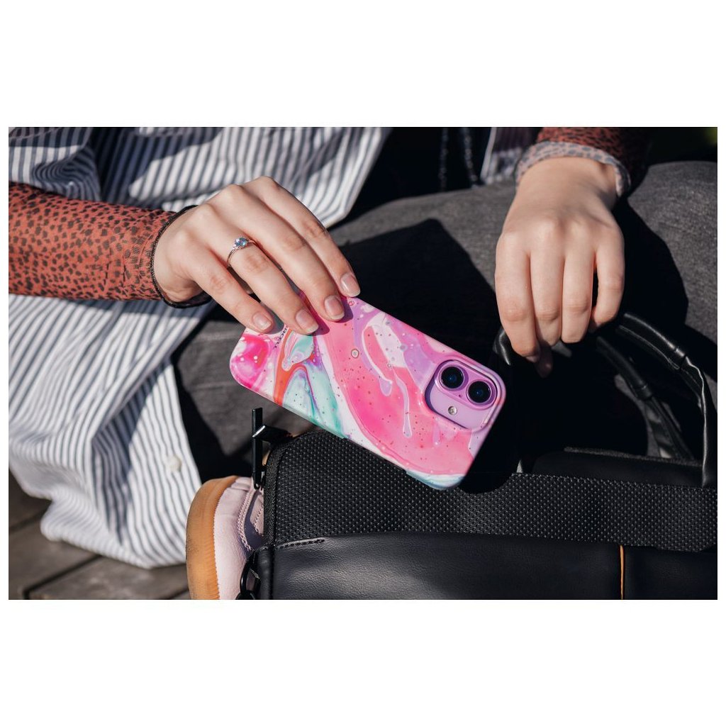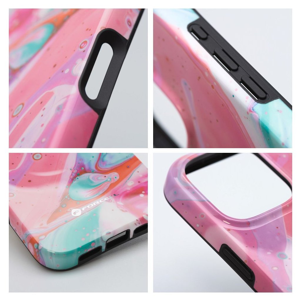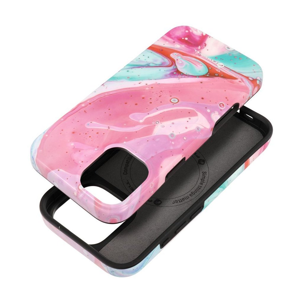 Kvalitný pestrofarebný kryt Case for iPhone 16 PLUS F-Protect Mirage compatible with Magsafe Military Drop-Test ružový mramor sa vyznačuje atraktívnym dizajnom a robustným spracovaním. Jeho výrazná potlač bola vytvorená pomocou technológie 4D a je pokrytá dodatočnou priehľadnou vrstvou, ktorá mu dodáva odolnosť a chráni ho pred odieraním. Puzdro je vyrobené z pružného silikónu a zvýšené okraje na hranách a okolo rámu fotoaparátu chránia smartfón.