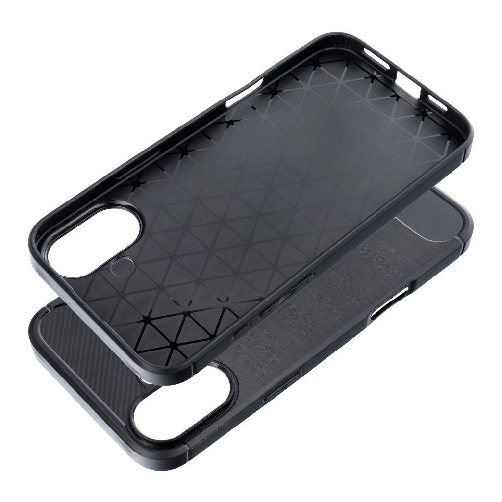 Puzdro CARBON pre IPHONE 16 Plus čierne je elegantné, štýlové a vyrobené z nárazuvzdornej gumy. Poskytuje plnú ochranu aj v náročných podmienkach a jeho vzhľad zaujme aj náročnejších užívateľov.