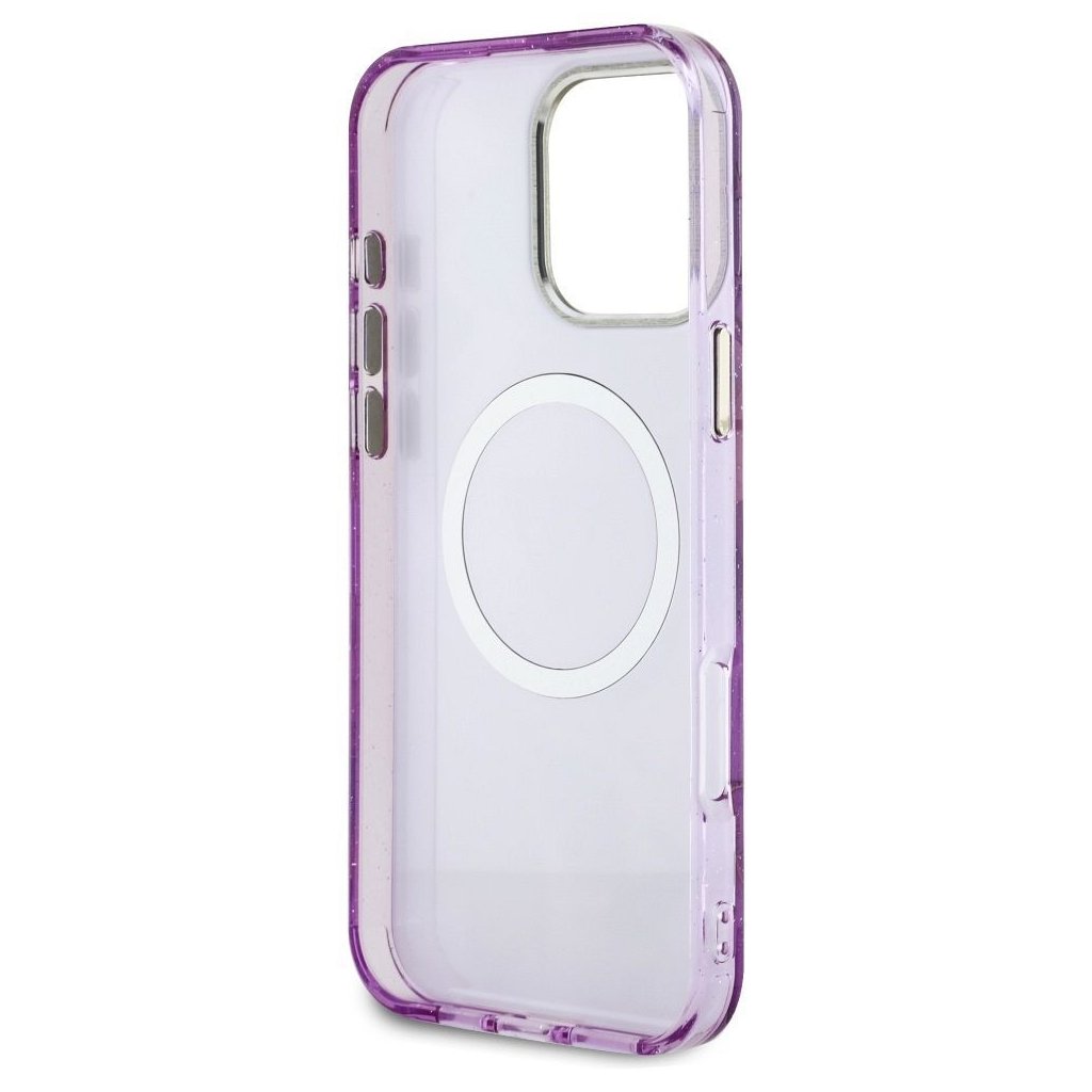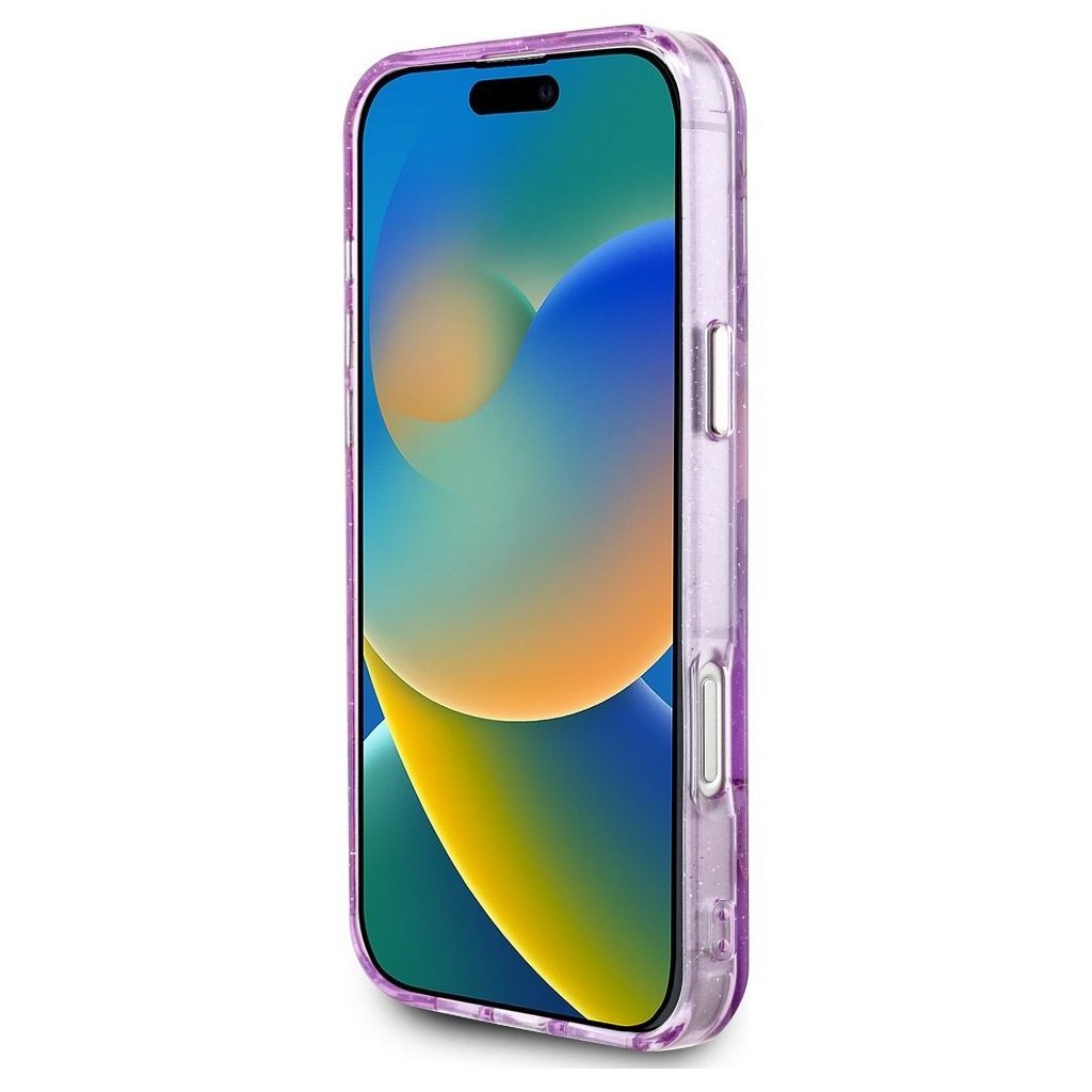 Štýlové a GUESS pre IPHONE 16 Pro Max s MagSafe GUHMP16XHFLPEDU (IML Metal Glitter Flowers Triangle) fialové je kvalitný obal na Váš telefón vyrobený z odolných materiálov, s prepracovanými detailmi a dizajnom.