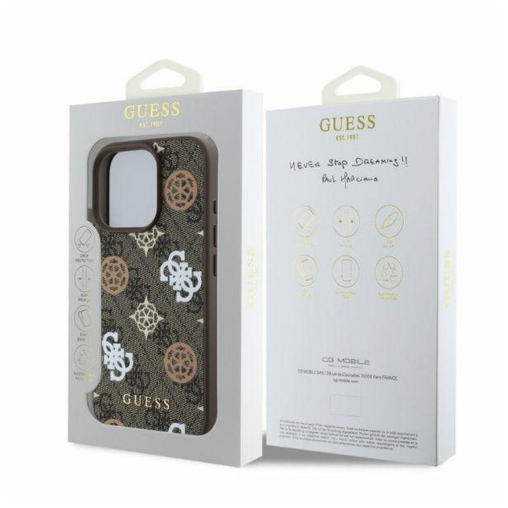 Štýlové a GUESS pre IPHONE 16 Pro Max s MagSafe GUHMP16XP4PWPW (PU Peony on 4G Background) hnedé je kvalitný obal na Váš telefón vyrobený z odolných materiálov, s prepracovanými detailmi a dizajnom.