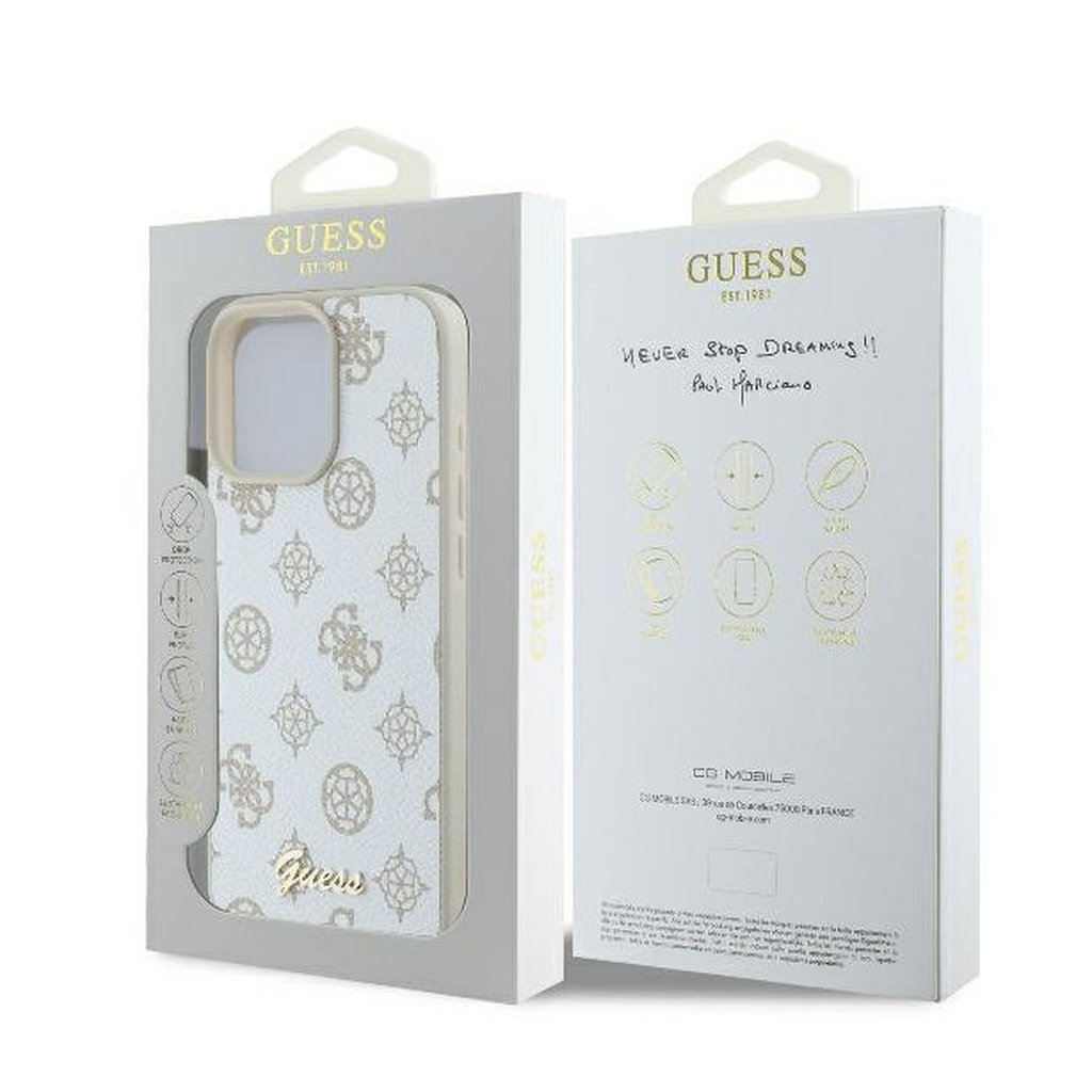 Štýlové a GUESS pre IPHONE 16 Pro Max s MagSafe GUHMP16XPGPYSH (PU Peony Script Logo) biele je kvalitný obal na Váš telefón vyrobený z odolných materiálov, s prepracovanými detailmi a dizajnom.