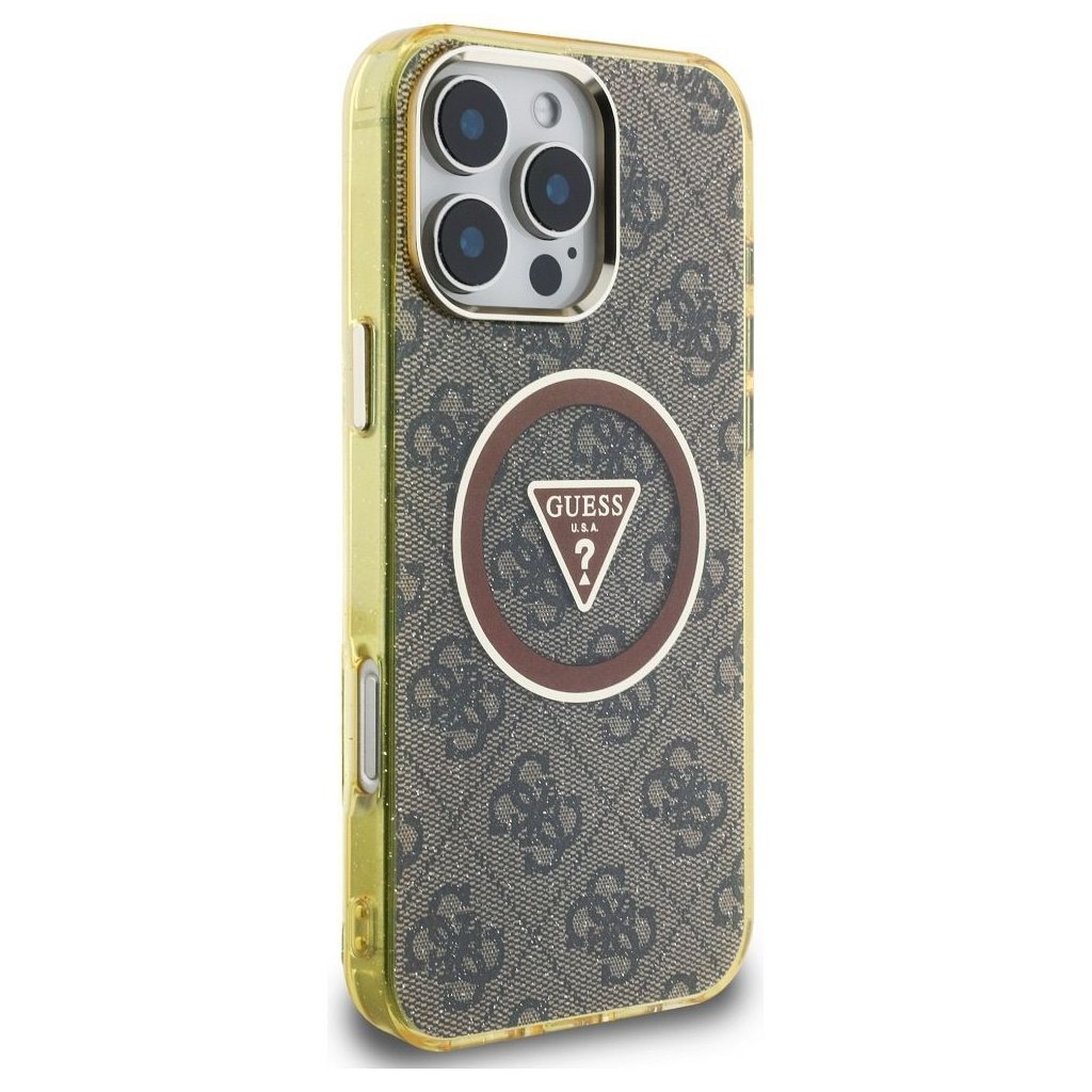 Štýlové a GUESS pre IPHONE 16 Pro Max s MagSafe GUHMP16XHG4PRTGW (IML Metal Glitter 4G Circle Triangle) hnedé je kvalitný obal na Váš telefón vyrobený z odolných materiálov, s prepracovanými detailmi a dizajnom.