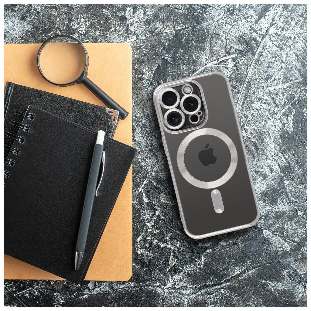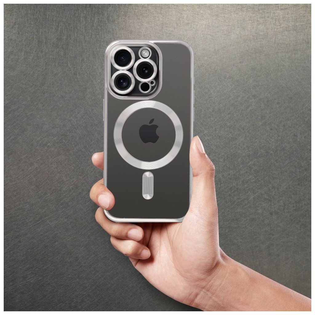 MagSafe priehľadné puzdro Case for iPhone 16 PRO MAX Electro Mag Cover compatible with MagSafe strieborné je vhodné pre pužitie s rôznym príslušenstvom podporujúce magnetické uchytenie MagSafe®. Kvalitný kryt ochráni váš telefón pred poškodením a vďaka prekrytiu ostrovčeka fotoaparátu bude vaša optika v bezpečí.