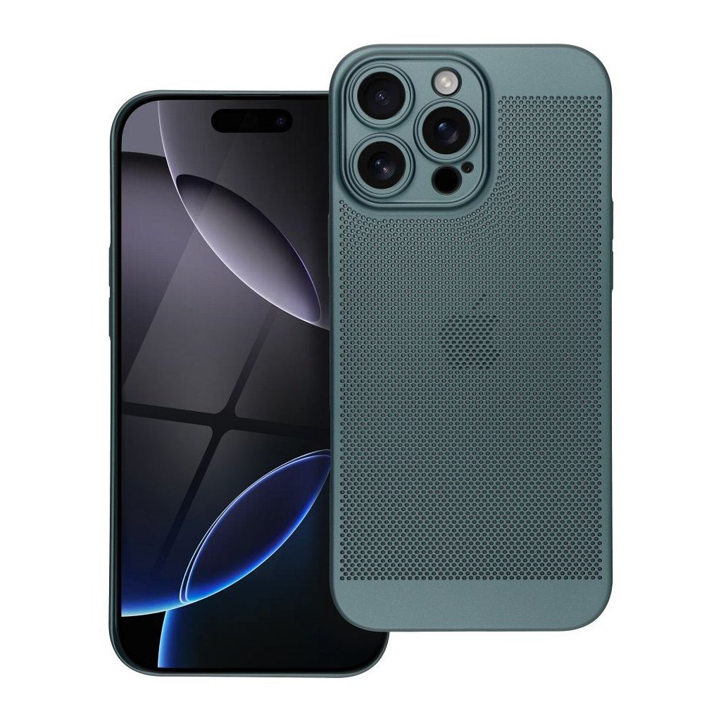 Kryt s vetraním BREEZY case pre IPHONE 16 Pro Max zelený je riešenie ktoré spája ochranu, funkčnosť a štýlový dizajn. Bolo navrhnuté tak, aby zabezpečilo optimálnu cirkuláciu vzduchu, čím sa znižuje riziko zahrievania telefónu. Vďaka perforovanému vzoru a kvalitnému plastu puzdro chráni telefón a zachováva jeho štíhlosť. Je vyrobené z jedného odliatku, čo zaručuje dokonalé prispôsobenie a ochranu ostrovčeka fotoaparátu.