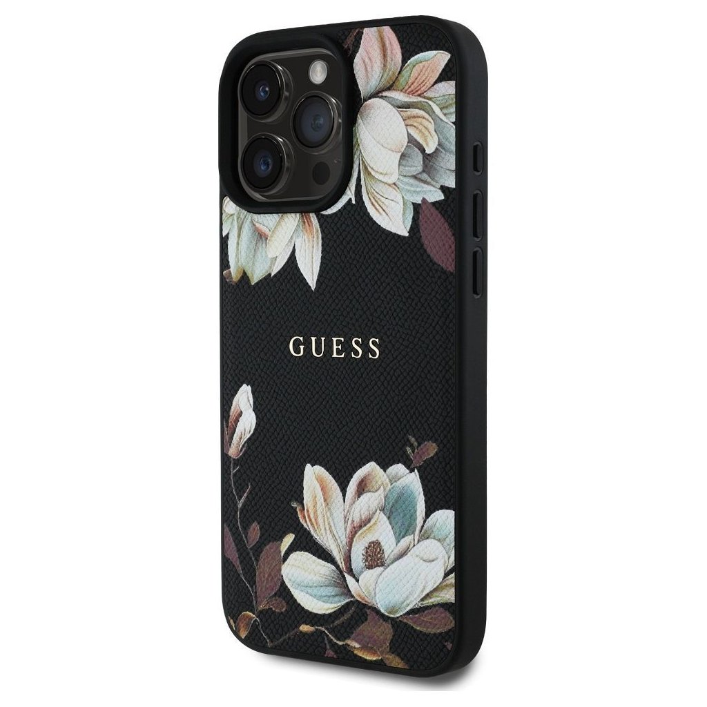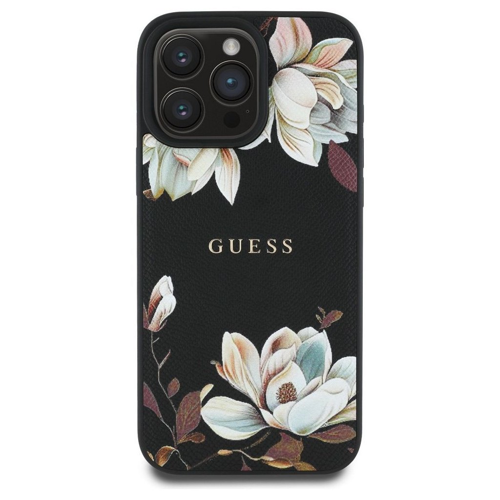 Štýlové a GUESS pre IPHONE 16 Pro s MagSafe GUHMP16LPGNMPLMK (PU Grained Flowers Classic Logo) čierne je kvalitný obal na Váš telefón vyrobený z odolných materiálov, s prepracovanými detailmi a dizajnom.