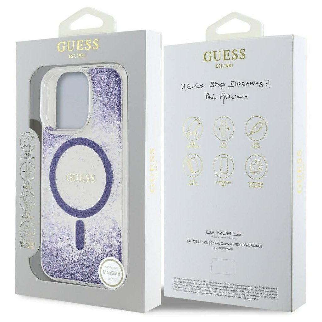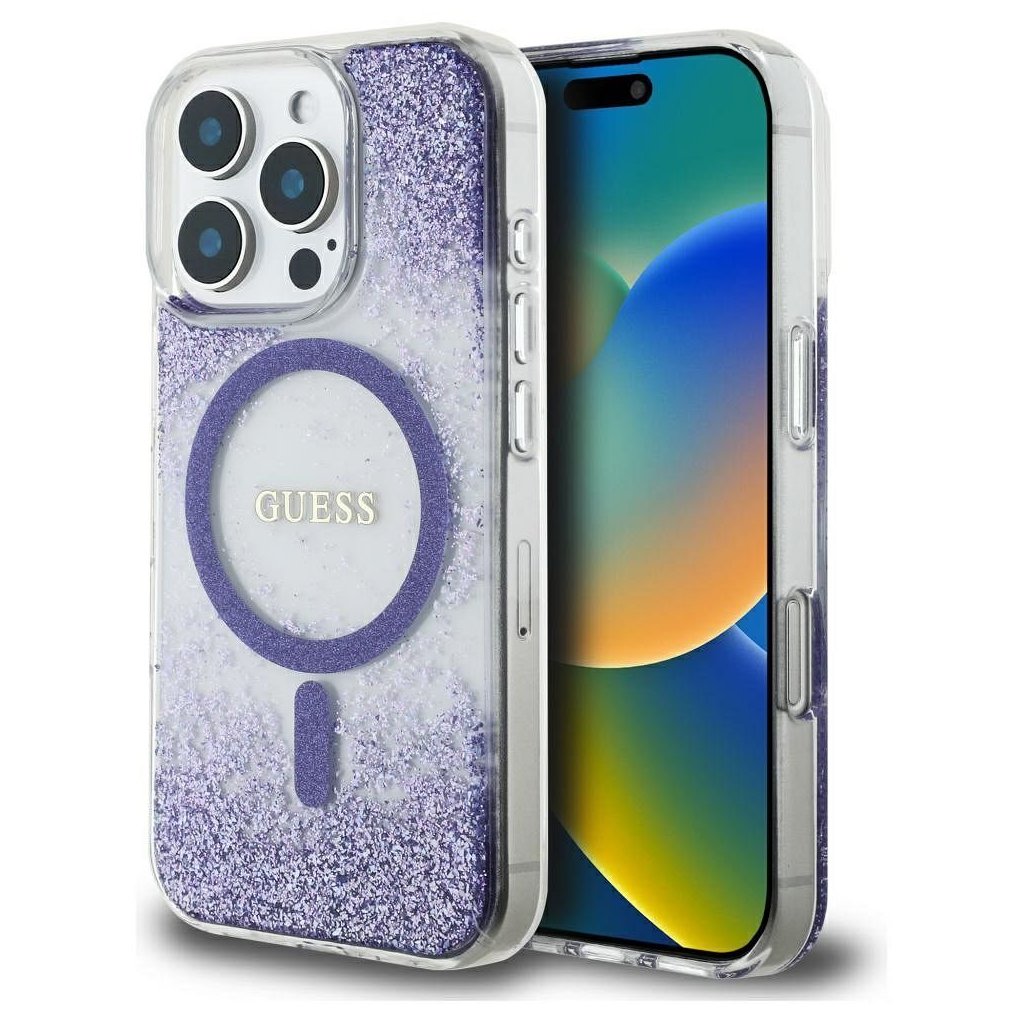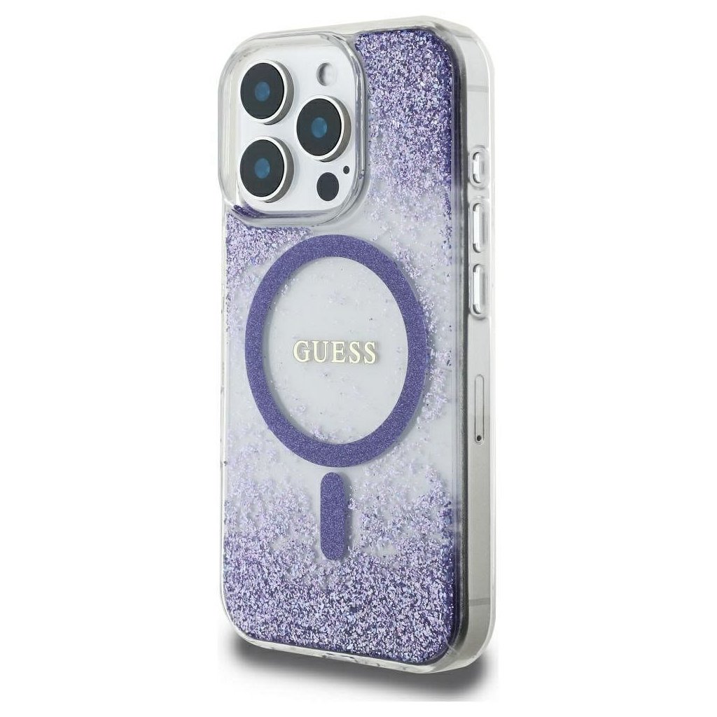 GUESS pre IPHONE 16 Pro s MagSafe GUHMP16LRGRGEU (Resin Bottom Glitter) fialové
