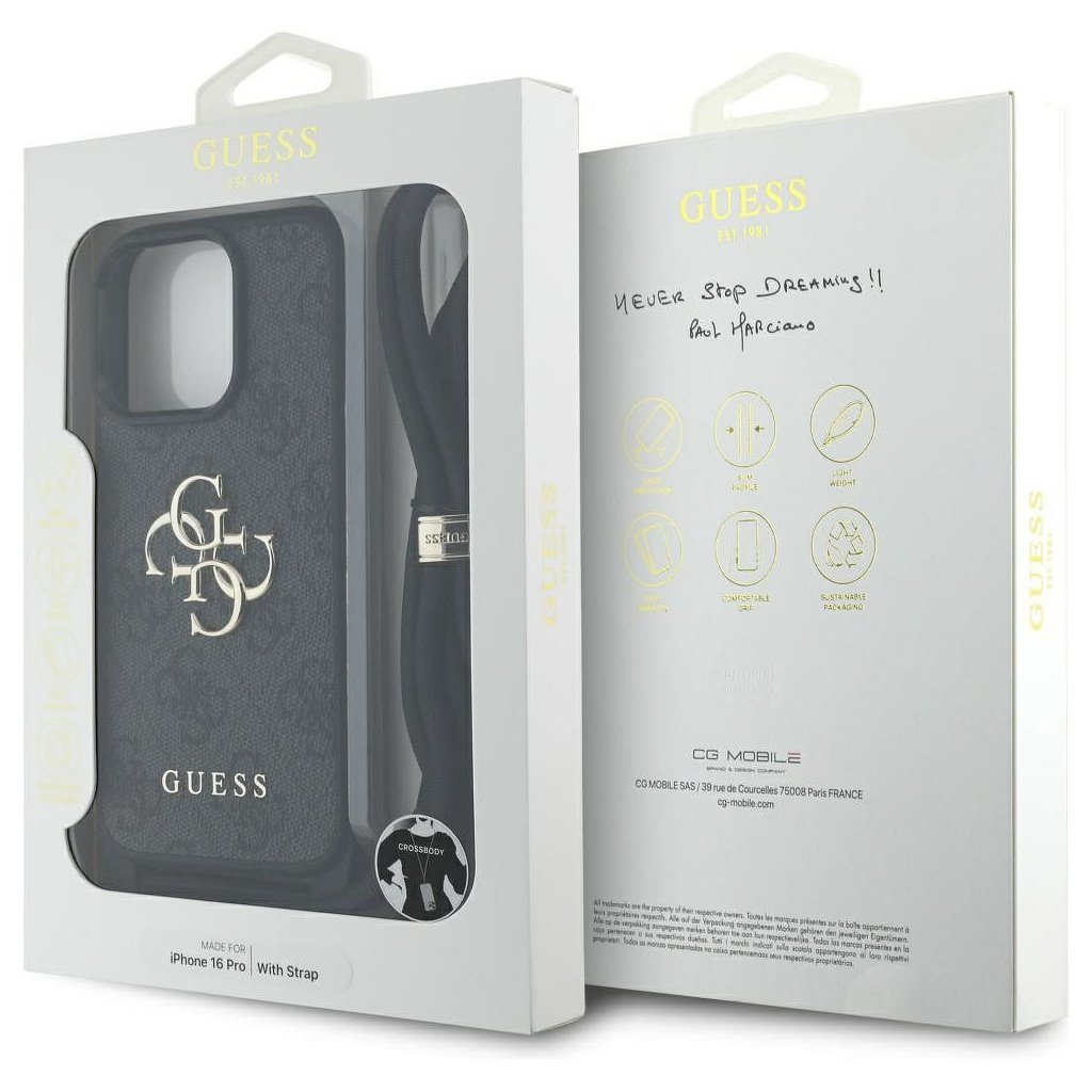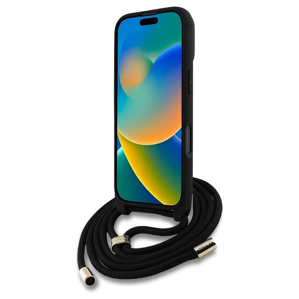 Štýlové a GUESS pre IPHONE 16 Pro GUHCP16LP4GMGCRK (CBDY PU 4G Big Logo W/Cord Strap) čierne je kvalitný obal na Váš telefón vyrobený z odolných materiálov, s prepracovanými detailmi a dizajnom.