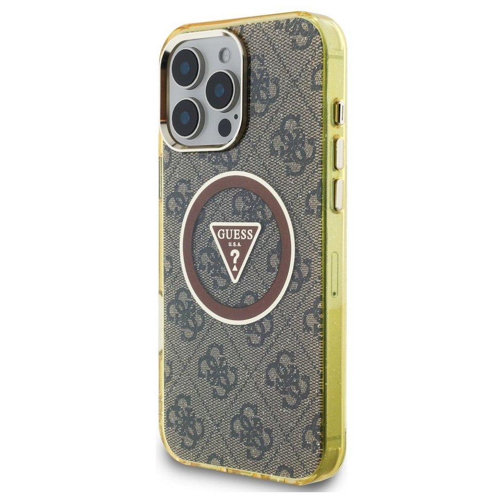 Štýlové a GUESS pre IPHONE 16 Pro s MagSafe GUHMP16LHG4PRTGW (IML Metal Glitter 4G Circle Triangle) hnedé je kvalitný obal na Váš telefón vyrobený z odolných materiálov, s prepracovanými detailmi a dizajnom.
