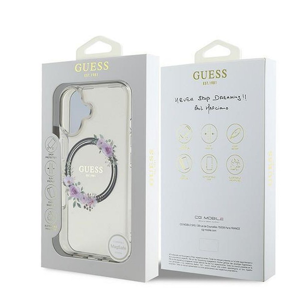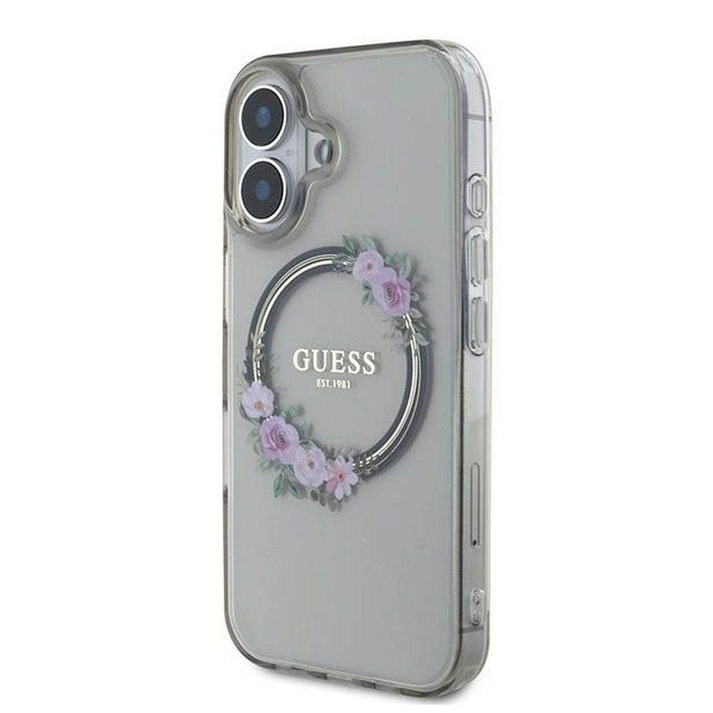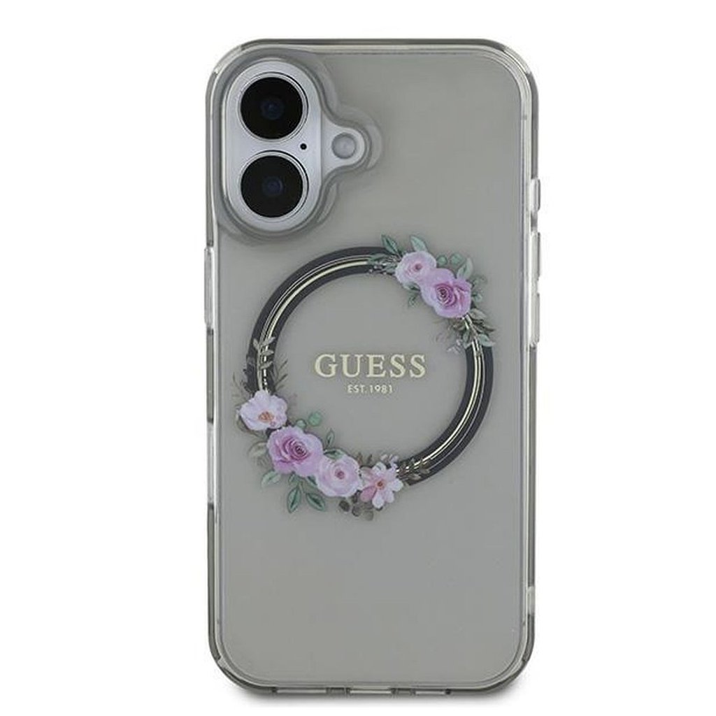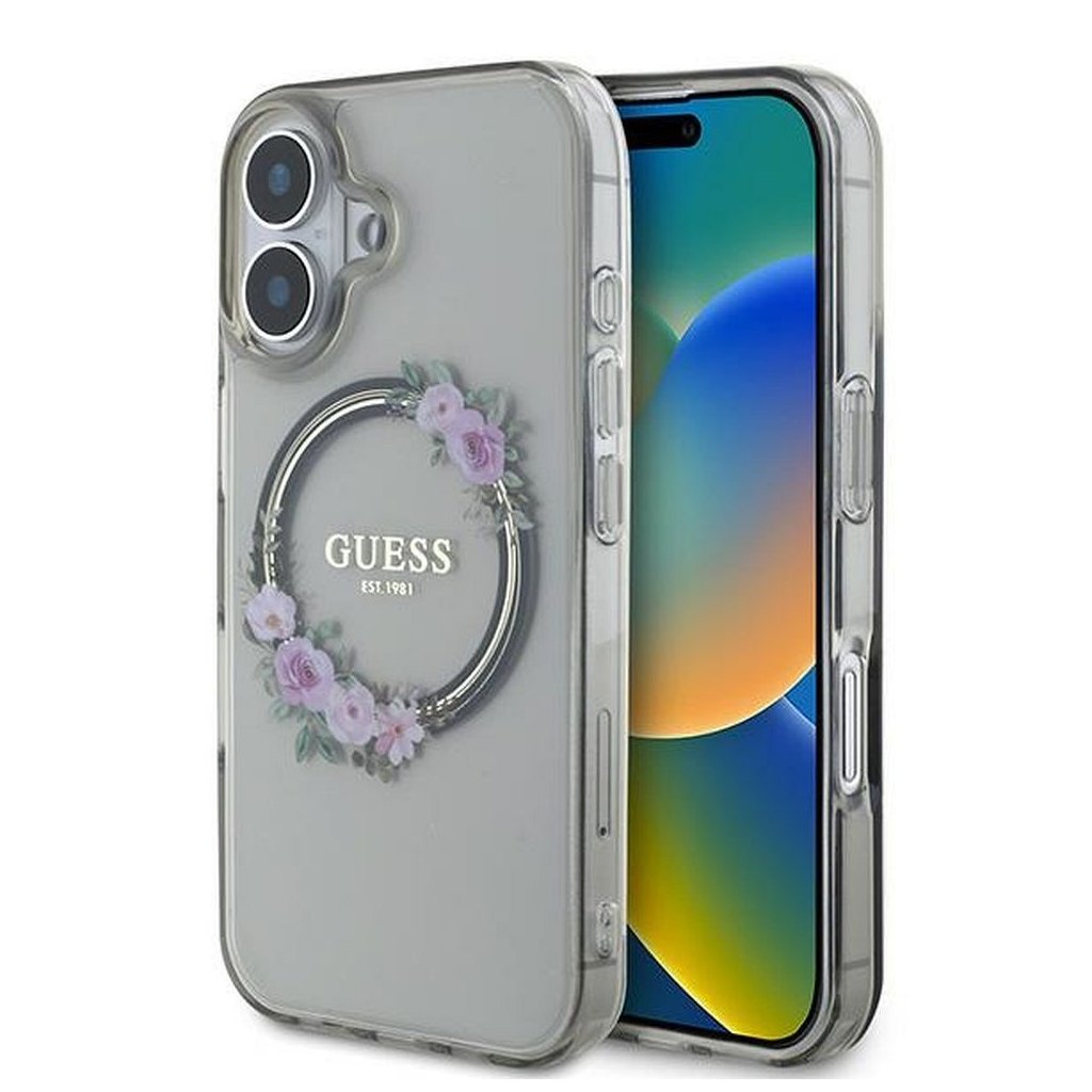 Štýlové a GUESS pre IPHONE 16 s MagSafe GUHMP16SHFWFCK (IML Flowers Wreath) čierne je kvalitný obal na Váš telefón vyrobený z odolných materiálov, s prepracovanými detailmi a dizajnom.