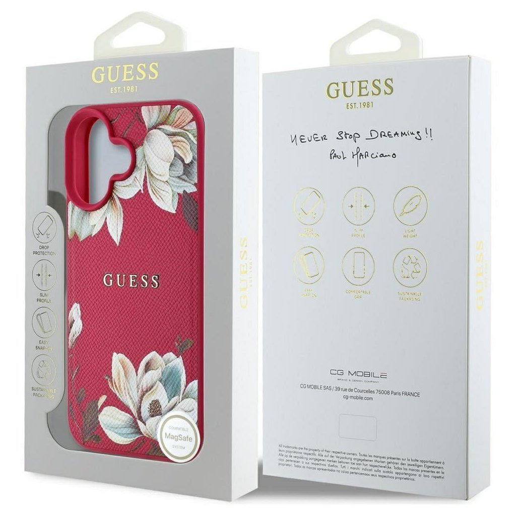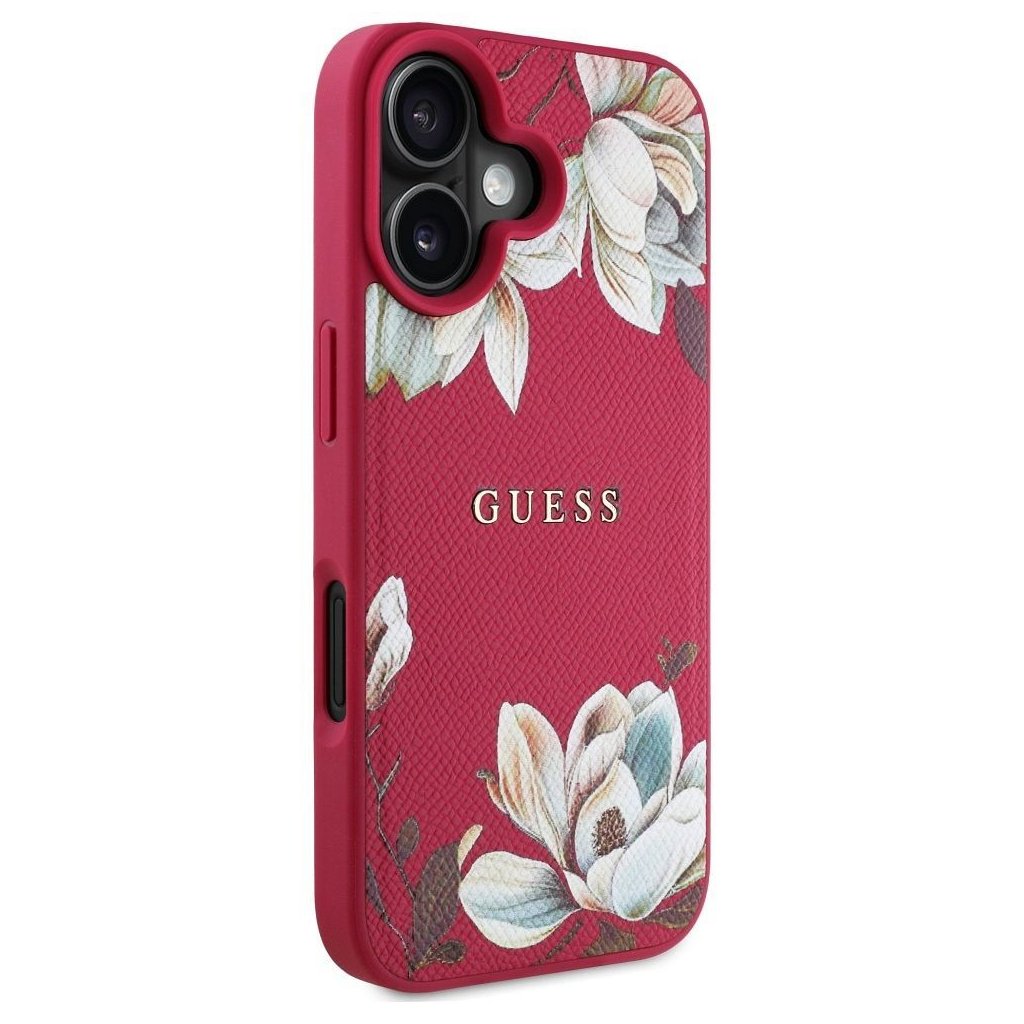 Štýlové a GUESS pre IPHONE 16 s MagSafe GUHMP16SPGNMPLMF (PU Grained Flowers Classic Logo) fuschia je kvalitný obal na Váš telefón vyrobený z odolných materiálov, s prepracovanými detailmi a dizajnom.