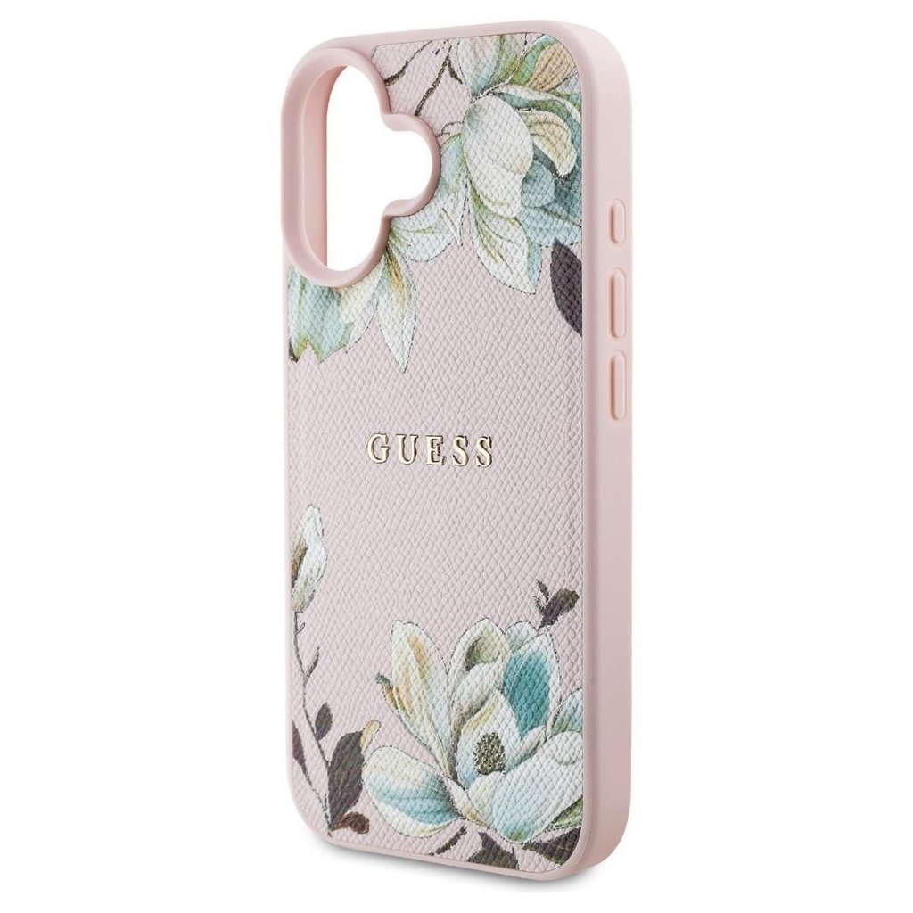 GUESS pre IPHONE 16 s MagSafe GUHMP16SPGNMPLMP (PU Grained Flowers Classic Logo) ružové