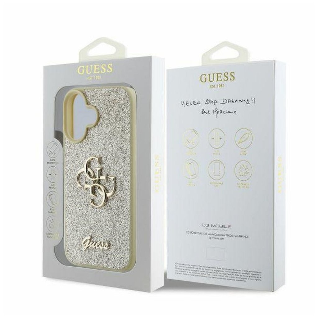 Štýlové a GUESS pre IPHONE 16 GUHCP16SHG4SGD (Fixed Glitter Big 4G) zlaté je kvalitný obal na Váš telefón vyrobený z odolných materiálov, s prepracovanými detailmi a dizajnom.