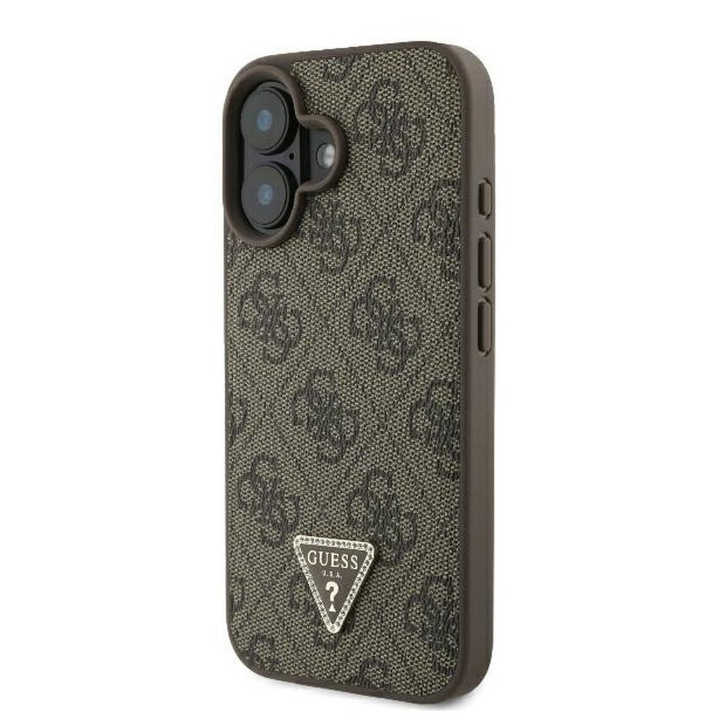 GUESS pre IPHONE 16 GUHCP16SP4TDPW (PU Leather 4G Triangle Strass) hnedé