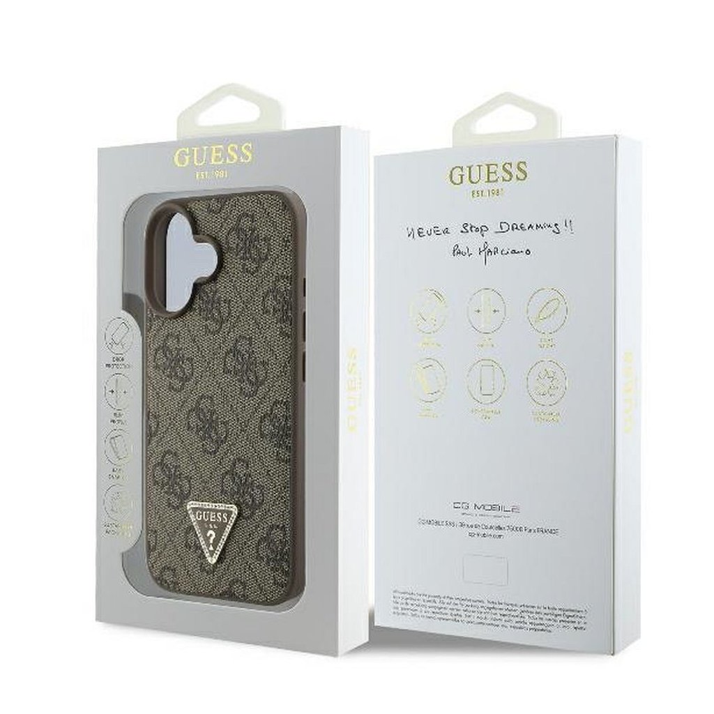 Štýlové a GUESS pre IPHONE 16 GUHCP16SP4TDPW (PU Leather 4G Triangle Strass) hnedé je kvalitný obal na Váš telefón vyrobený z odolných materiálov, s prepracovanými detailmi a dizajnom.