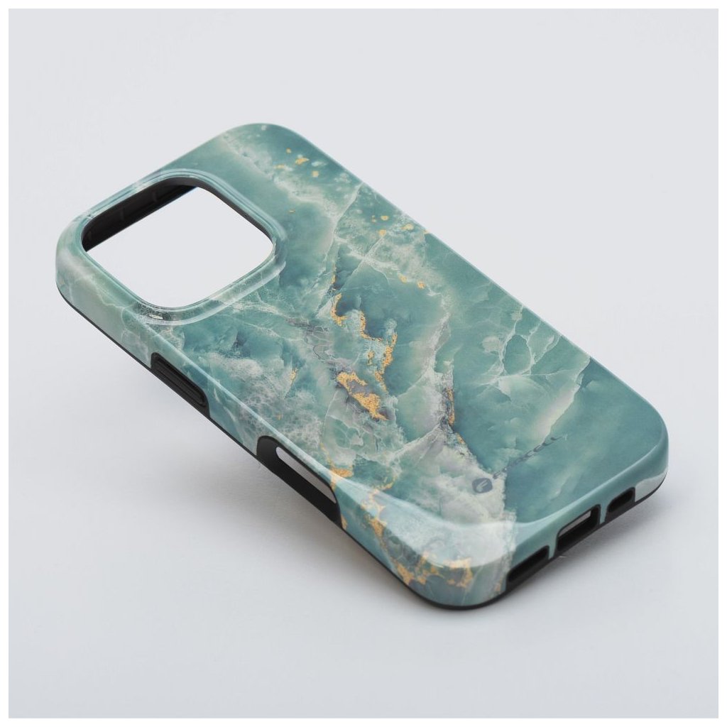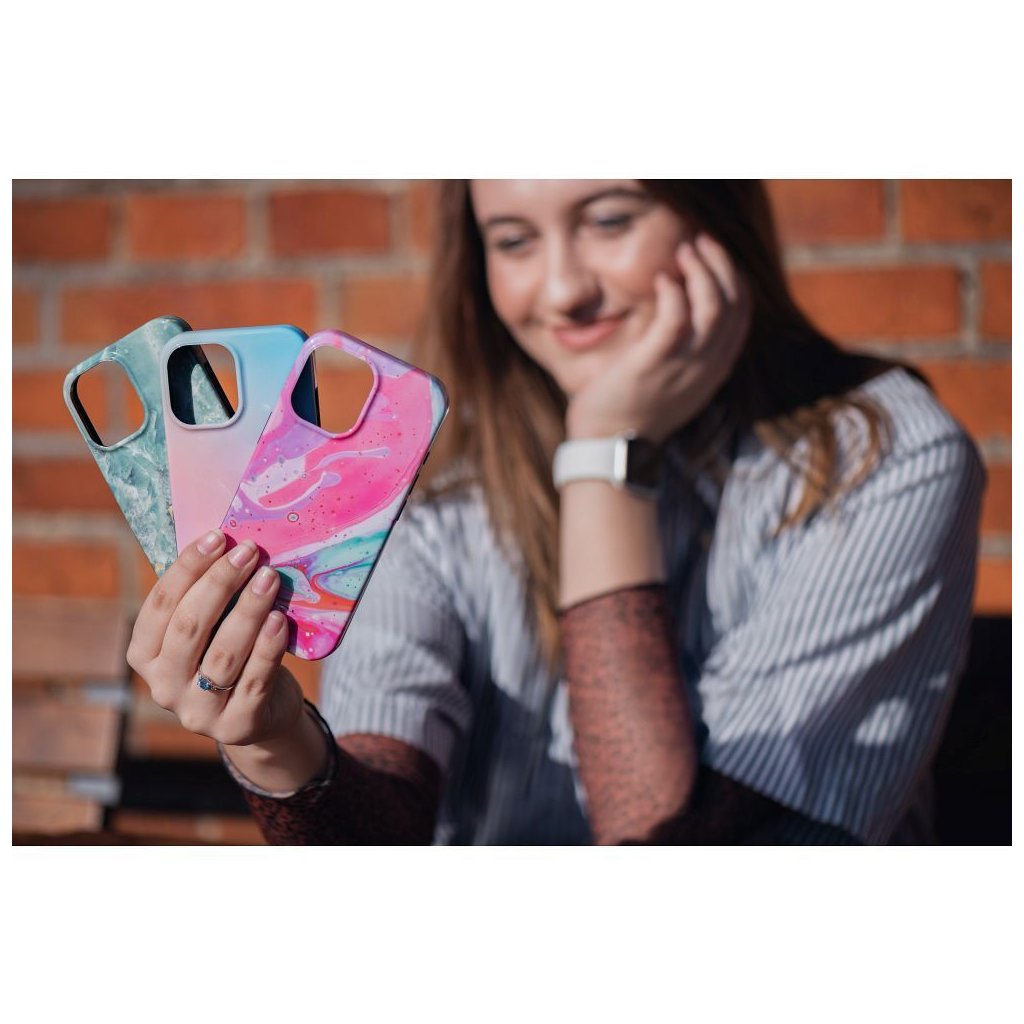 Kvalitný pestrofarebný kryt Case for iPhone 16 F-Protect Mirage compatible with Magsafe Military Drop-Test zelený mramor sa vyznačuje atraktívnym dizajnom a robustným spracovaním. Jeho výrazná potlač bola vytvorená pomocou technológie 4D a je pokrytá dodatočnou priehľadnou vrstvou, ktorá mu dodáva odolnosť a chráni ho pred odieraním. Puzdro je vyrobené z pružného silikónu a zvýšené okraje na hranách a okolo rámu fotoaparátu chránia smartfón.