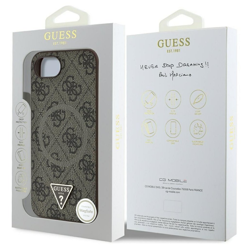Štýlové a GUESS pre IPHONE 16e (SE 4 2025) s MagSafe GUHMPSE4P4TDPW (PU 4G RingTriangle Logo) hnedé je kvalitný obal na Váš telefón vyrobený z odolných materiálov, s prepracovanými detailmi a dizajnom.
