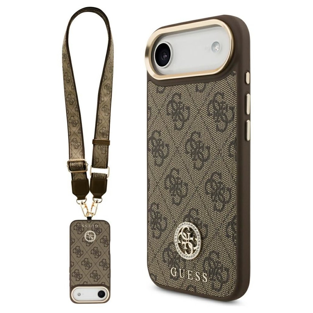 Štýlové a GUESS pre IPHONE 17 Air s MagSafe GUHMP17MP4G4DCSW (PU W/ Strass Logo & Big Strap Metal Buttons) hnedé je kvalitný obal na Váš telefón vyrobený z odolných materiálov, s prepracovanými detailmi a dizajnom.