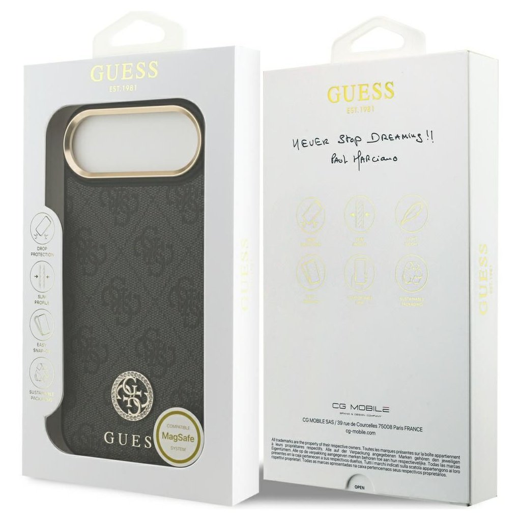 Štýlové a GUESS pre IPHONE 17 Air s MagSafe GUHMP17MP4GRMDEK (PU W/ 4G Strass Logo) čierne je kvalitný obal na Váš telefón vyrobený z odolných materiálov, s prepracovanými detailmi a dizajnom.