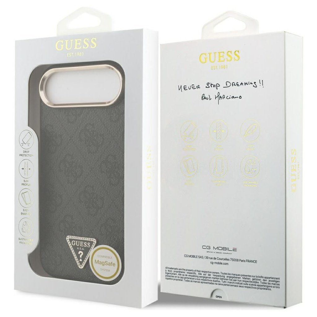 Štýlové a GUESS pre IPHONE 17 Air s MagSafe GUHMP17MP4GTDGMK (4G PU W/ Triangle Logo) zlaté čierne je kvalitný obal na Váš telefón vyrobený z odolných materiálov, s prepracovanými detailmi a dizajnom.