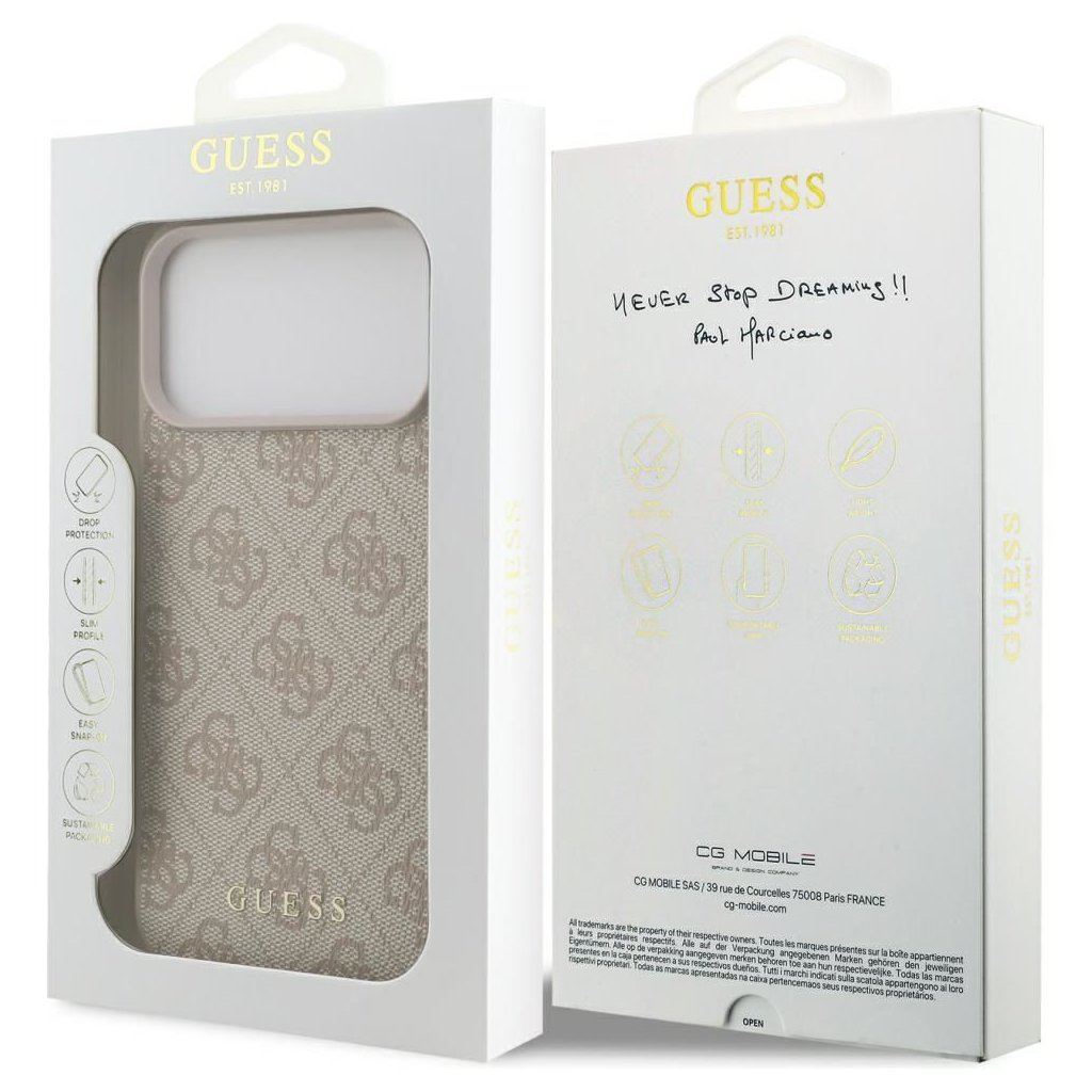 Štýlové a GUESS pre IPHONE 17 Pro Max GUHCP17XG4GFPI (PU 4G Classic) ružové je kvalitný obal na Váš telefón vyrobený z odolných materiálov, s prepracovanými detailmi a dizajnom.