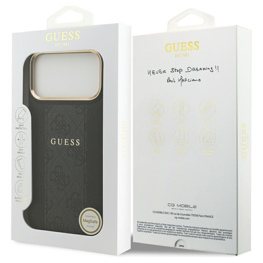 Štýlové a GUESS pre IPHONE 17 Pro Max s MagSafe GUHMP17XPG4SEMCK (PU W/ 4G Stripe) čierne je kvalitný obal na Váš telefón vyrobený z odolných materiálov, s prepracovanými detailmi a dizajnom.