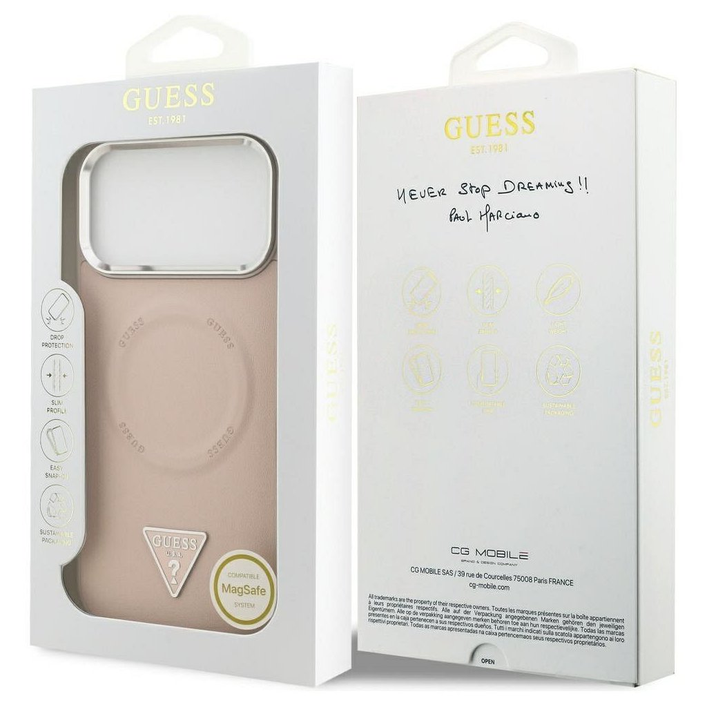 Štýlové a GUESS pre IPHONE 17 Pro Max s MagSafe GUHMP17XPSDTSCMP (PU W/ Triangle Logo) ružové je kvalitný obal na Váš telefón vyrobený z odolných materiálov, s prepracovanými detailmi a dizajnom.