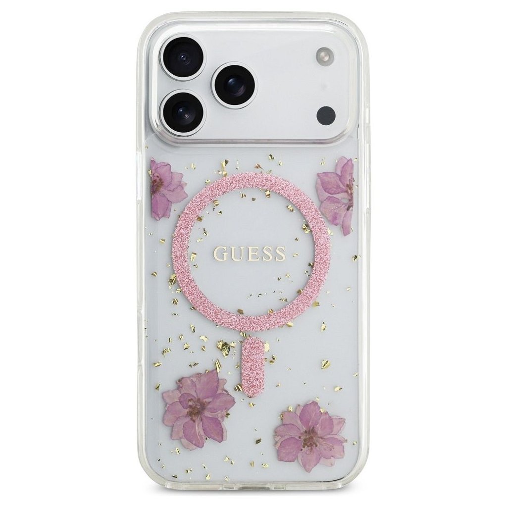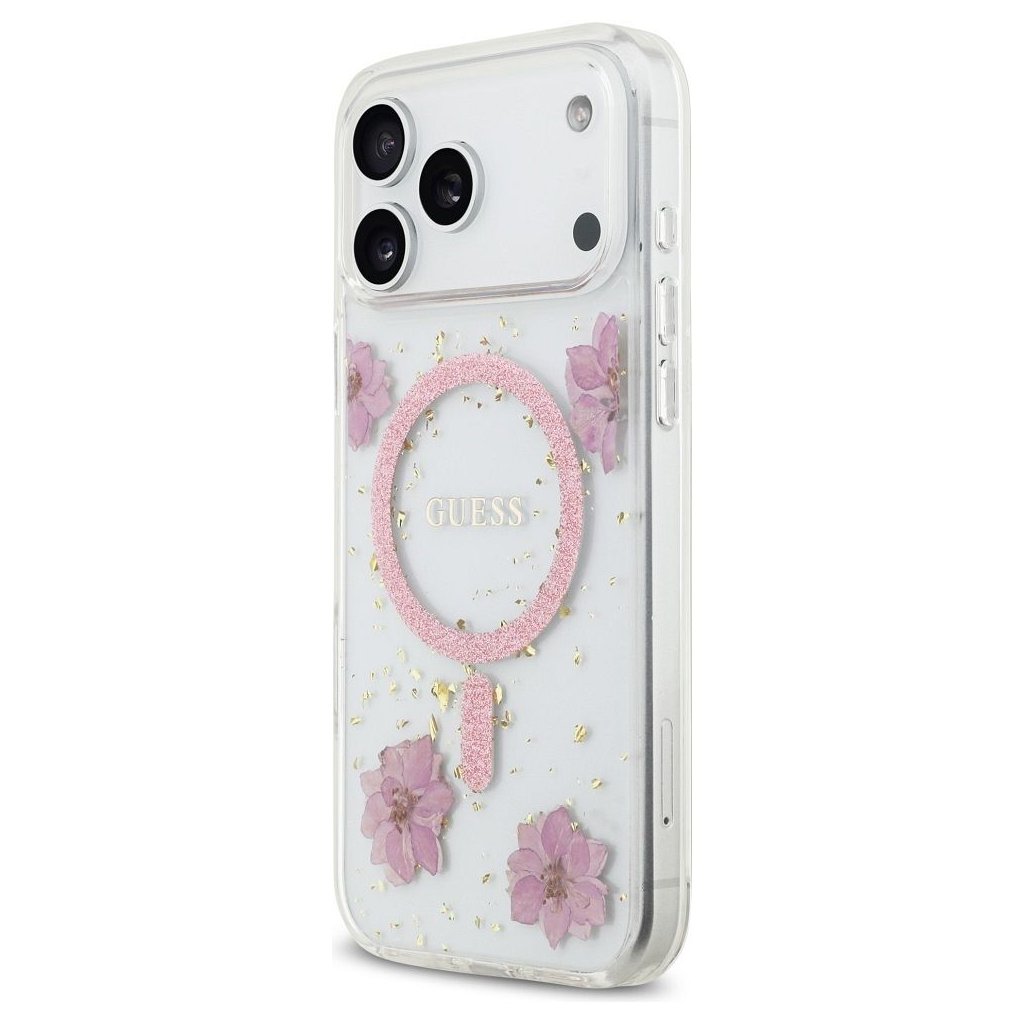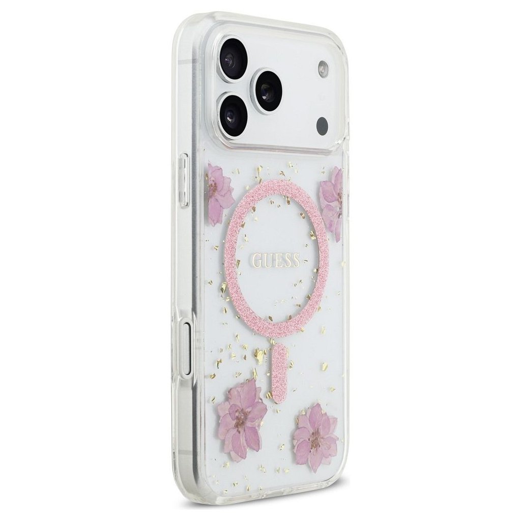 GUESS pre IPHONE 17 Pro Max s MagSafe GUHMP17XRBFGFGMP (Resin Flowers and Glitter) ružové