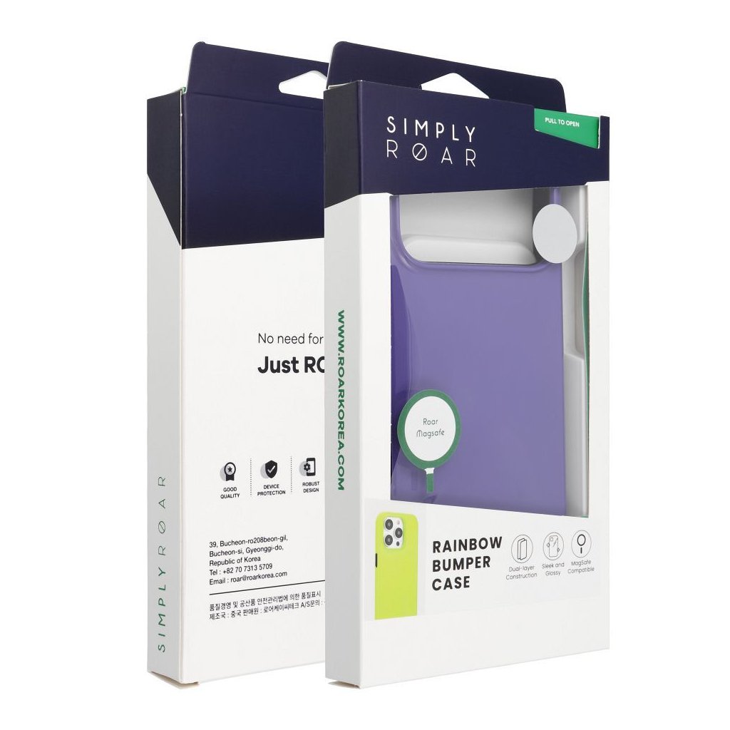 Puzdro Roar Rainbow Bumper Case je elegantné dvojvrstvové puzdro s plnou kompatibilitou s MagSafe. Kombinuje pevný zadný diel z polykarbonátu (PC) s pružným vnútorným dielom z TPU, čím poskytuje účinnú ochranu telefónu, pohodlné bezdrôtové nabíjanie a kompatibilitu s magnetickým príslušenstvom.