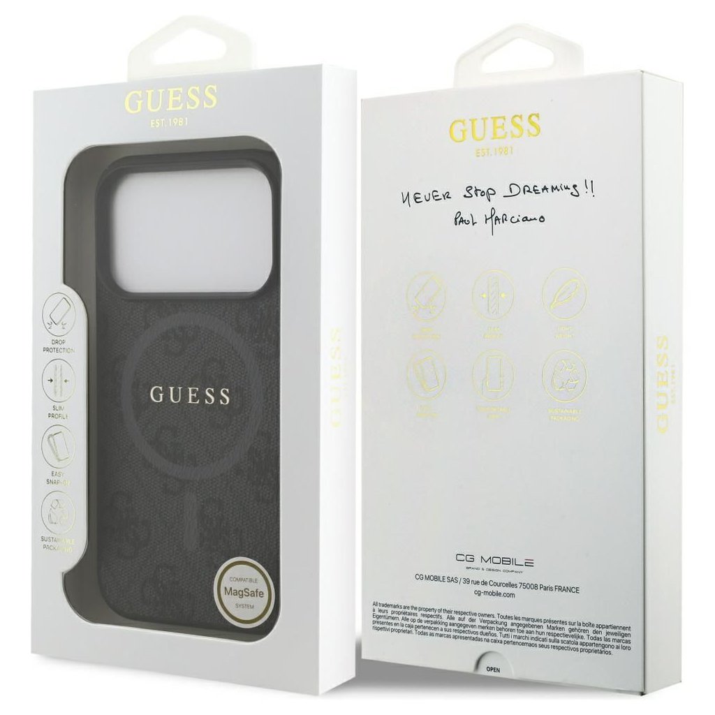 Štýlové a GUESS pre IPHONE 17 Pro s MagSafe GUHMP17LG4GFRK (PU 4G Ring Classic Logo) čierne je kvalitný obal na Váš telefón vyrobený z odolných materiálov, s prepracovanými detailmi a dizajnom.