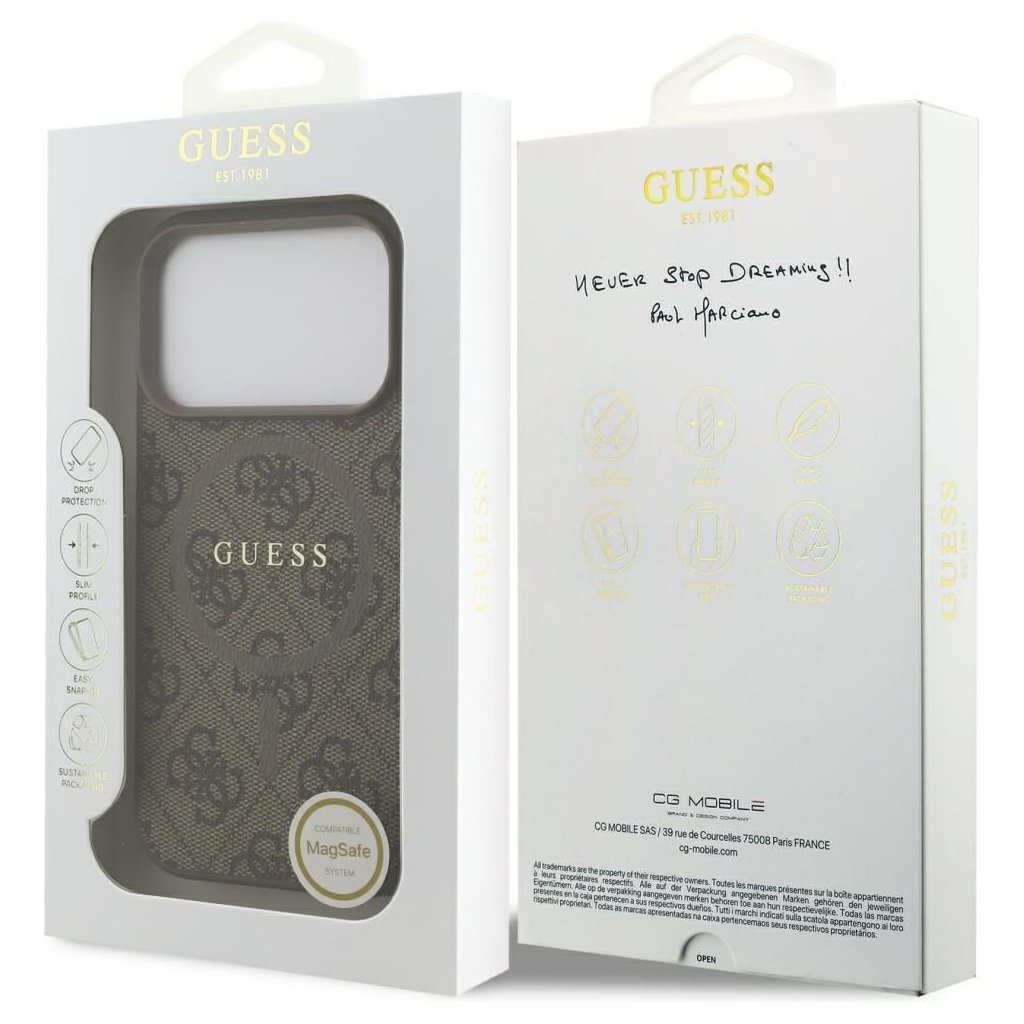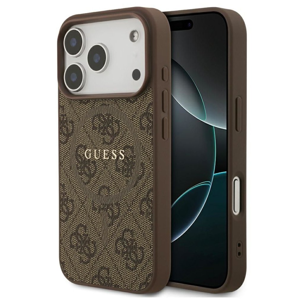 Štýlové a GUESS pre IPHONE 17 Pro s MagSafe GUHMP17LG4GFRW (PU 4G Ring Classic Logo) hnedé je kvalitný obal na Váš telefón vyrobený z odolných materiálov, s prepracovanými detailmi a dizajnom.