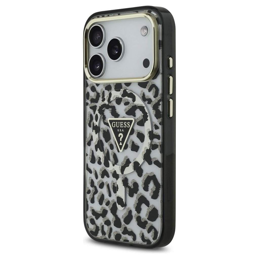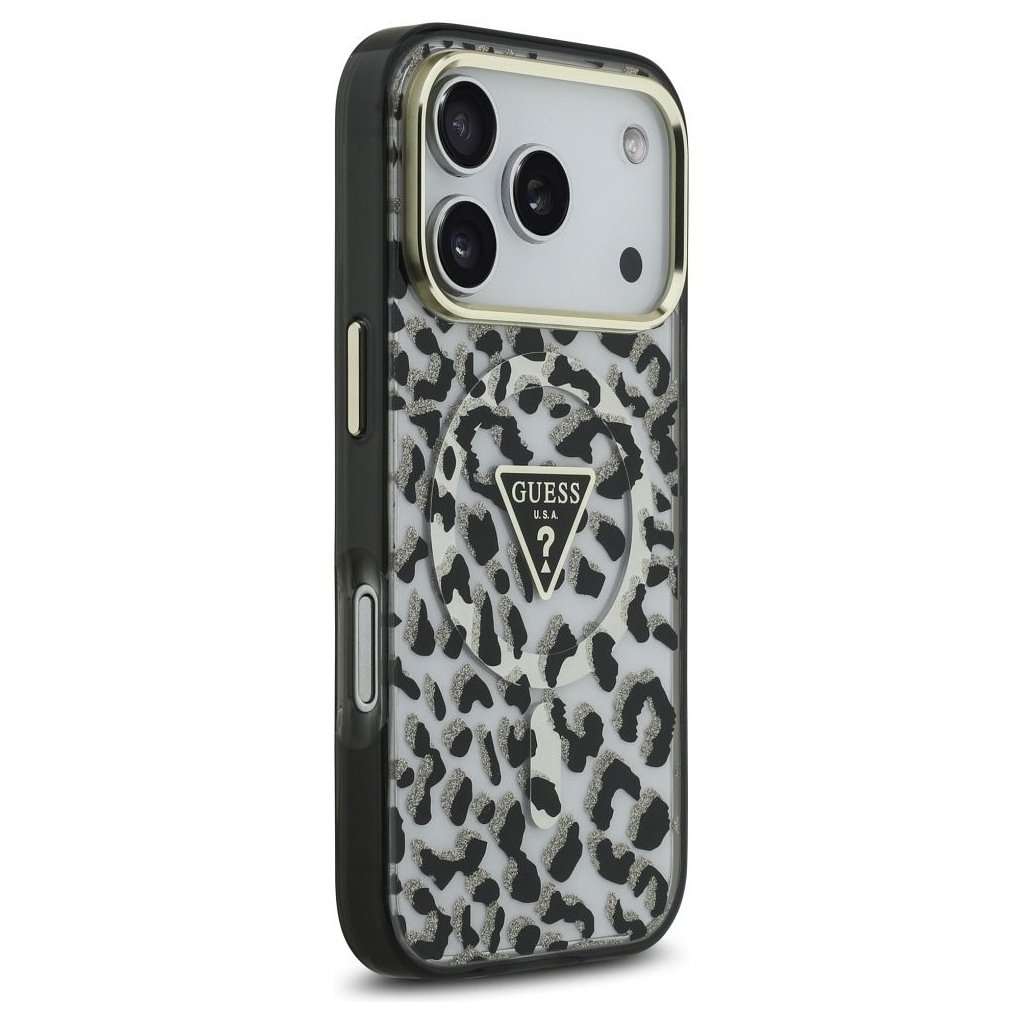 GUESS pre IPHONE 17 Pro s MagSafe GUHMP17LHLEGTGLK (PC TPU W/ Leopard Glitter) čierne