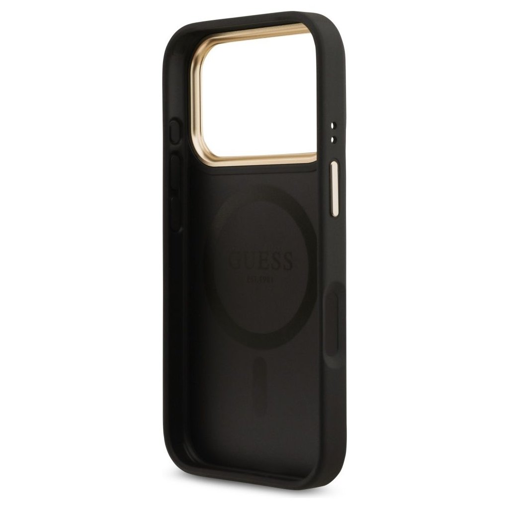 Štýlové a GUESS pre IPHONE 17 Pro s MagSafe GUHMP17LP4G4DCSK (PU W/ Strass Logo & Big Strap Metal Buttons) čierne je kvalitný obal na Váš telefón vyrobený z odolných materiálov, s prepracovanými detailmi a dizajnom.