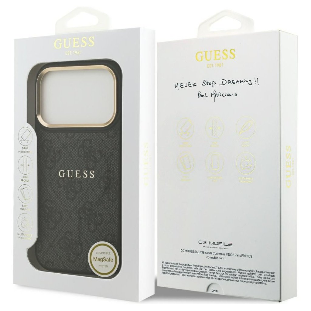 Štýlové a GUESS pre IPHONE 17 Pro s MagSafe GUHMP17LP4MSEGCK (PU 4G W/ Classic) čierne je kvalitný obal na Váš telefón vyrobený z odolných materiálov, s prepracovanými detailmi a dizajnom.