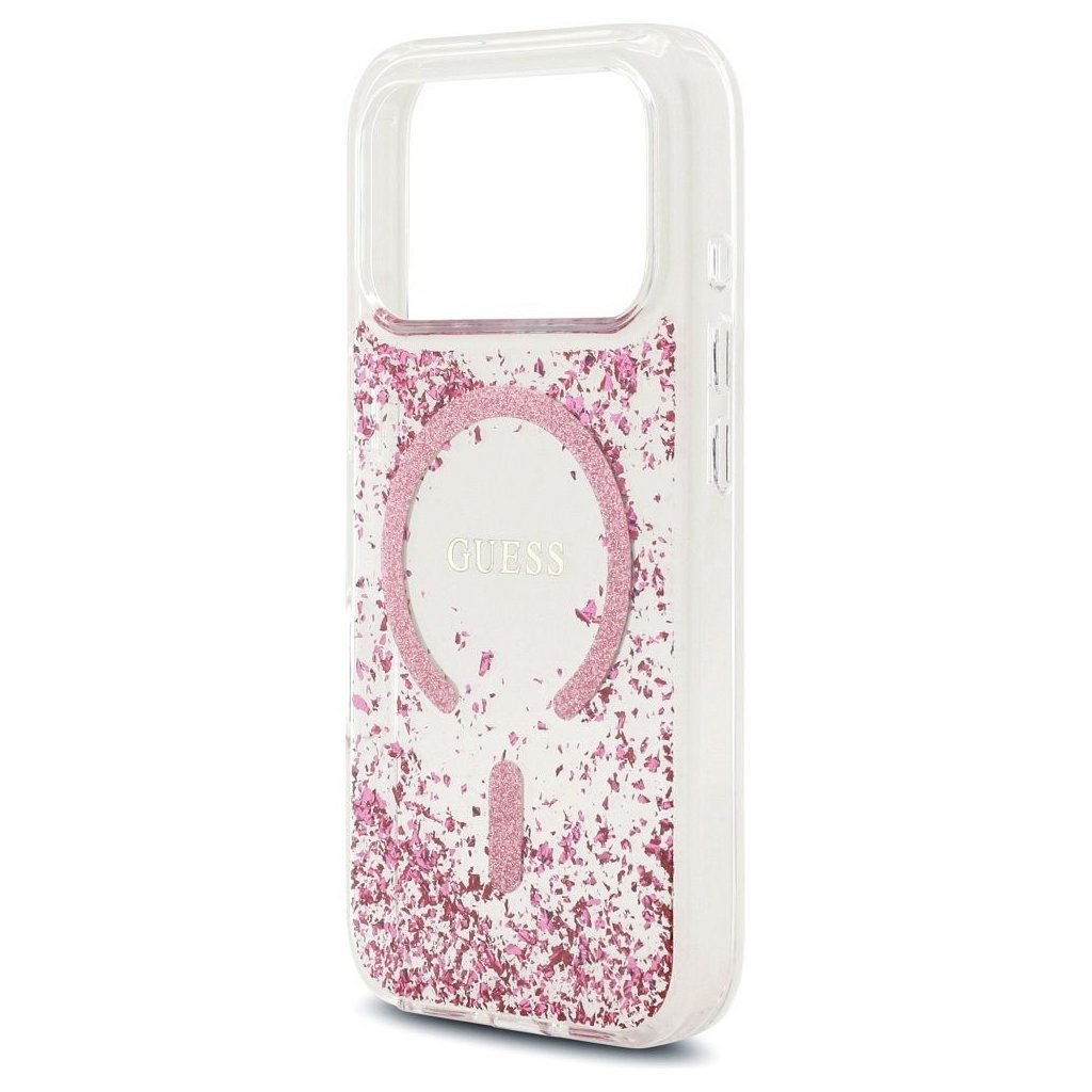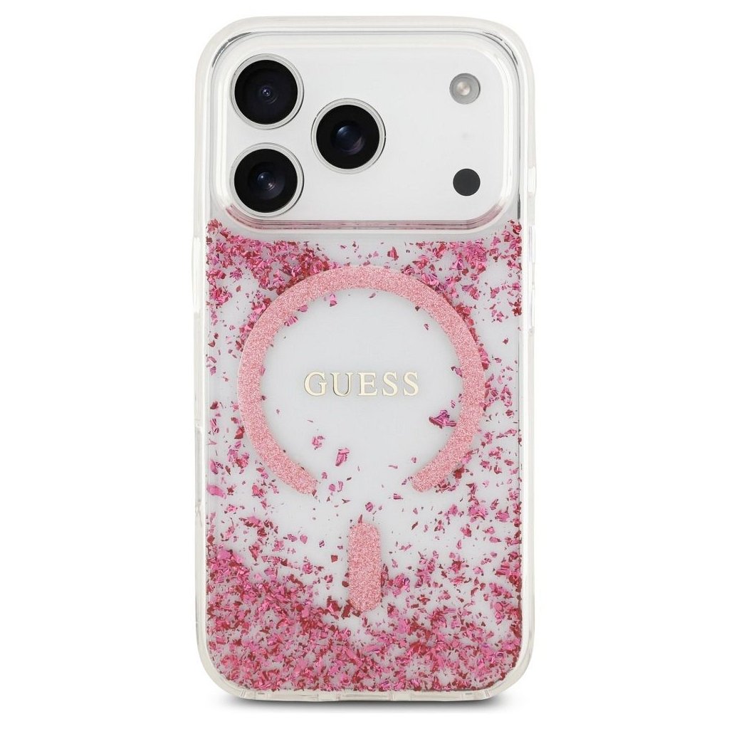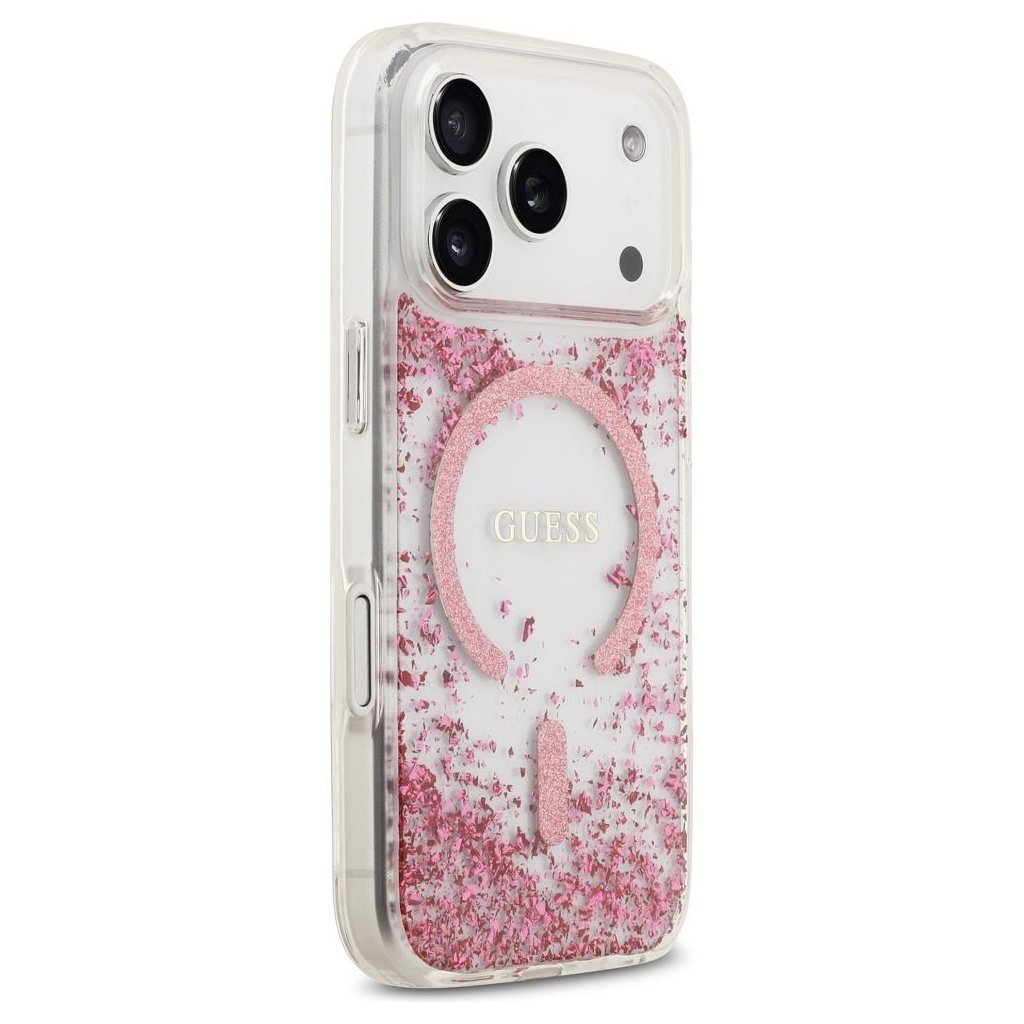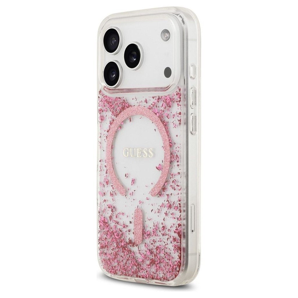 GUESS pre IPHONE 17 Pro s MagSafe GUHMP17LRGRGEP (Resin Bottom Glitter) ružové
