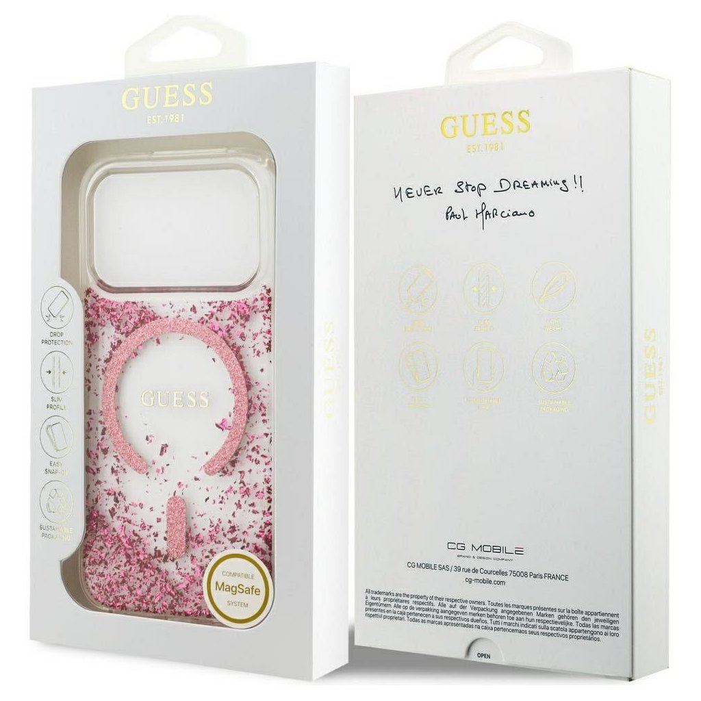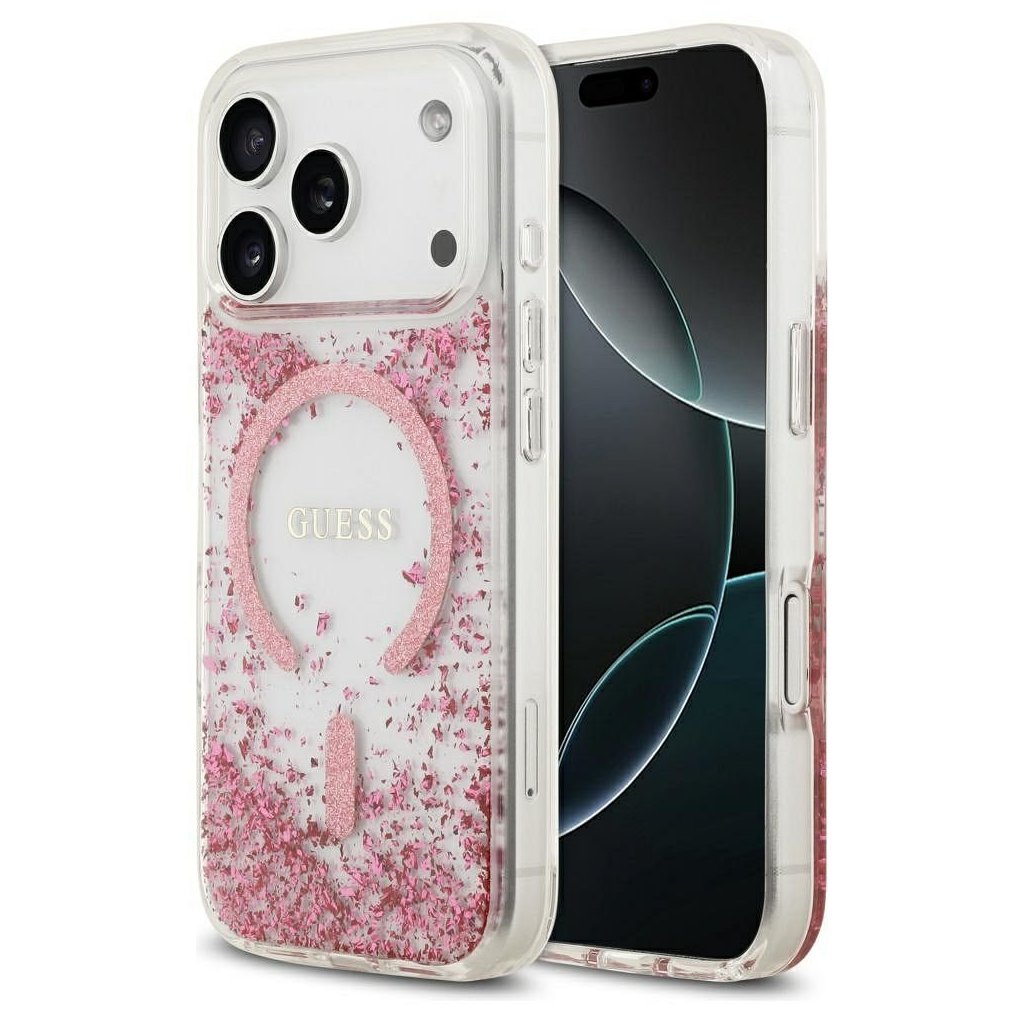 Štýlové a GUESS pre IPHONE 17 Pro s MagSafe GUHMP17LRGRGEP (Resin Bottom Glitter) ružové je kvalitný obal na Váš telefón vyrobený z odolných materiálov, s prepracovanými detailmi a dizajnom.