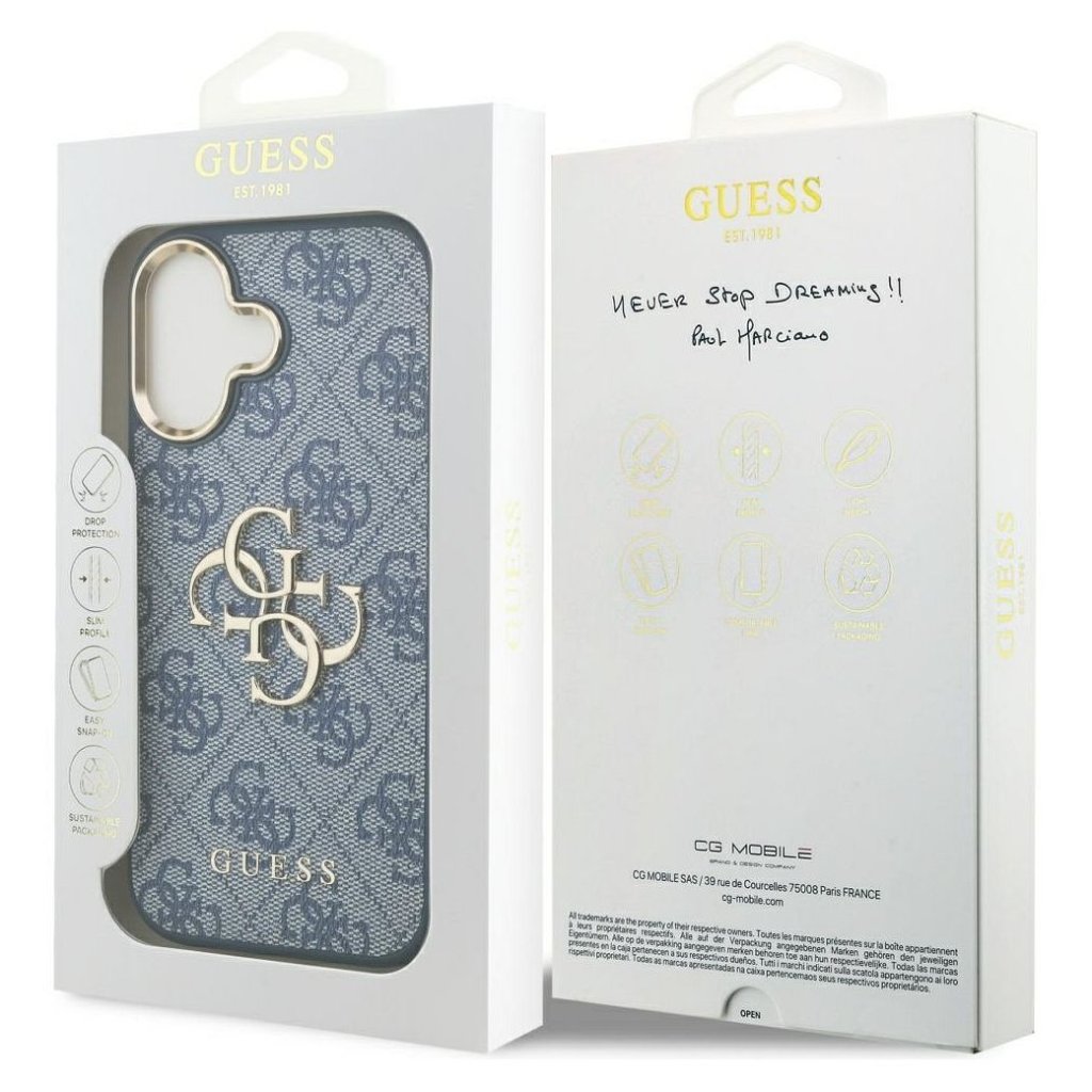 Štýlové a GUESS pre IPHONE 17 GUHCP17S4GMGCBL (PU W/ Big 4G Classic Logo) zlaté modré je kvalitný obal na Váš telefón vyrobený z odolných materiálov, s prepracovanými detailmi a dizajnom.