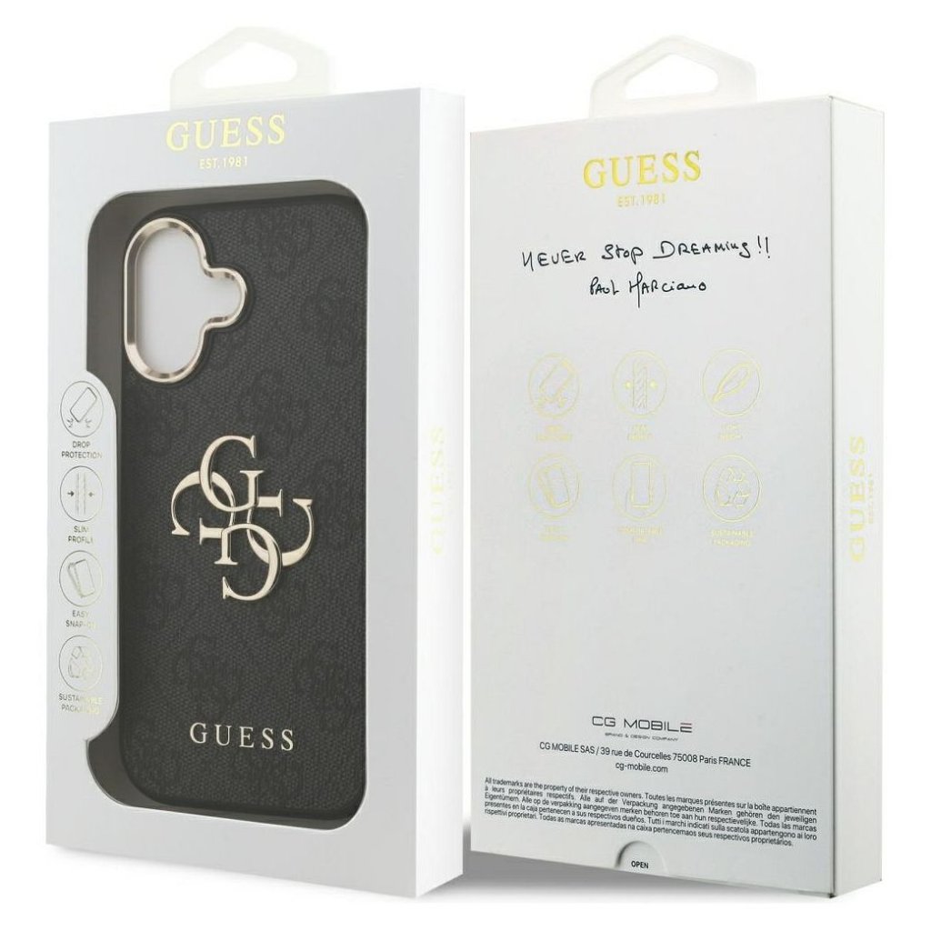 Štýlové a GUESS pre IPHONE 17 GUHCP17S4GMGCGR (PU W/ Big 4G Classic Logo) zlaté čierne je kvalitný obal na Váš telefón vyrobený z odolných materiálov, s prepracovanými detailmi a dizajnom.