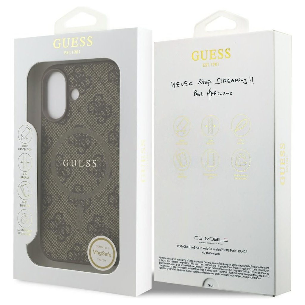 Štýlové a GUESS pre IPHONE 17 s MagSafe GUHMP17SG4GFRW (PU 4G Ring Classic Logo) hnedé je kvalitný obal na Váš telefón vyrobený z odolných materiálov, s prepracovanými detailmi a dizajnom.